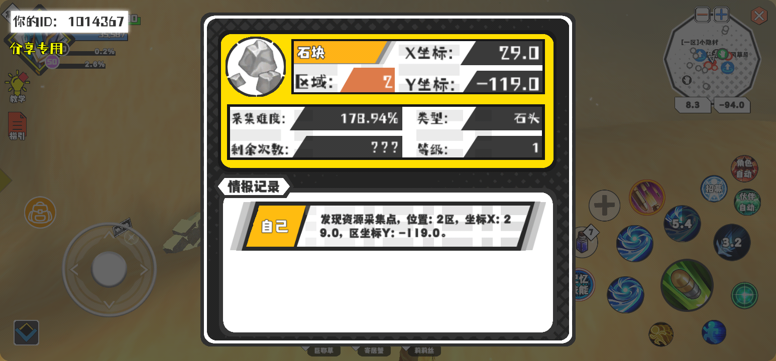 幸运时刻分享! 【资源采集点】8月19日下午10点 - 石块【1级】 【2区】 【X:29.0, Y:-119.0】