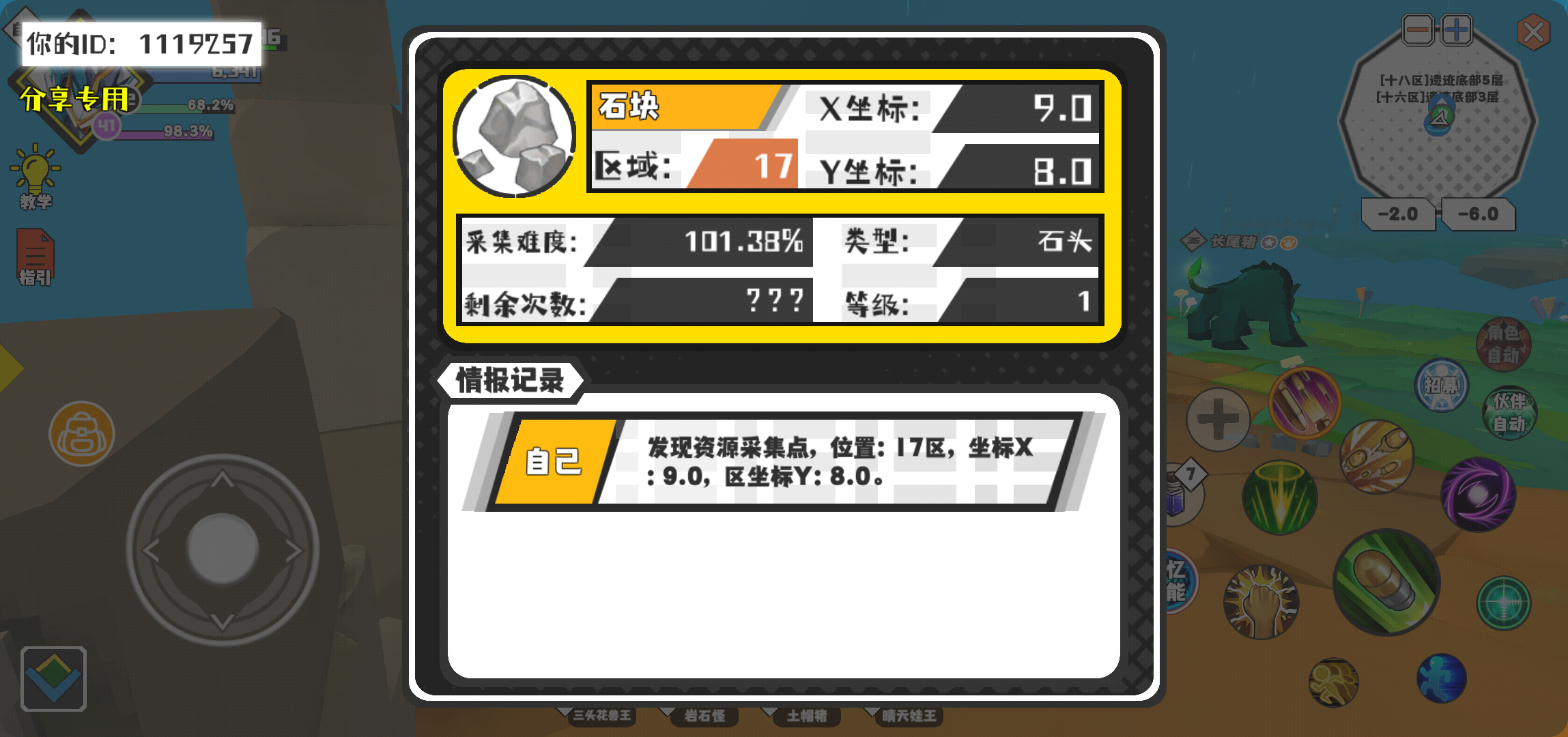 幸运时刻分享! 【资源采集点】8月22日下午11点 - 石块【1级】 【17区】 【X:9.0, Y:8.0】