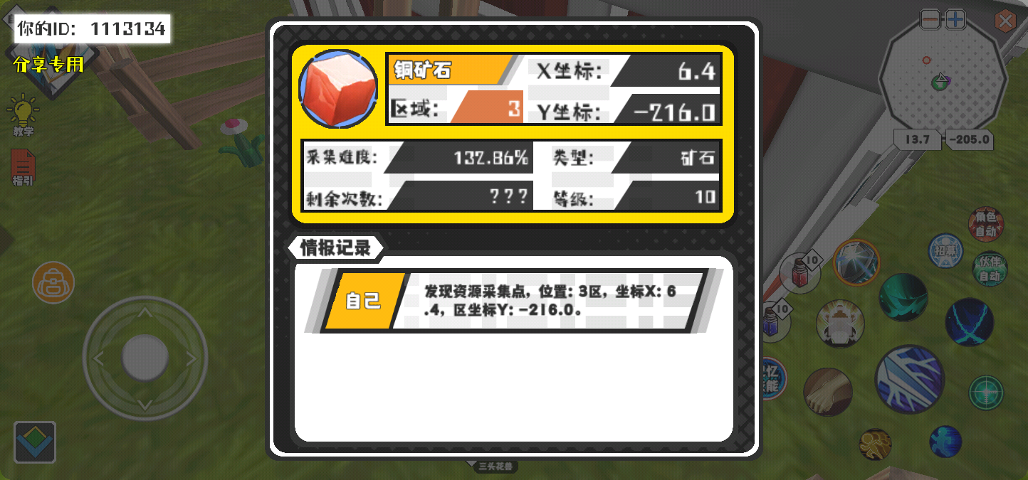 幸运时刻分享! 【资源采集点】8月13日下午12点 - 铜矿石【10级】 【3区】 【X:6.4, Y:-216.0】