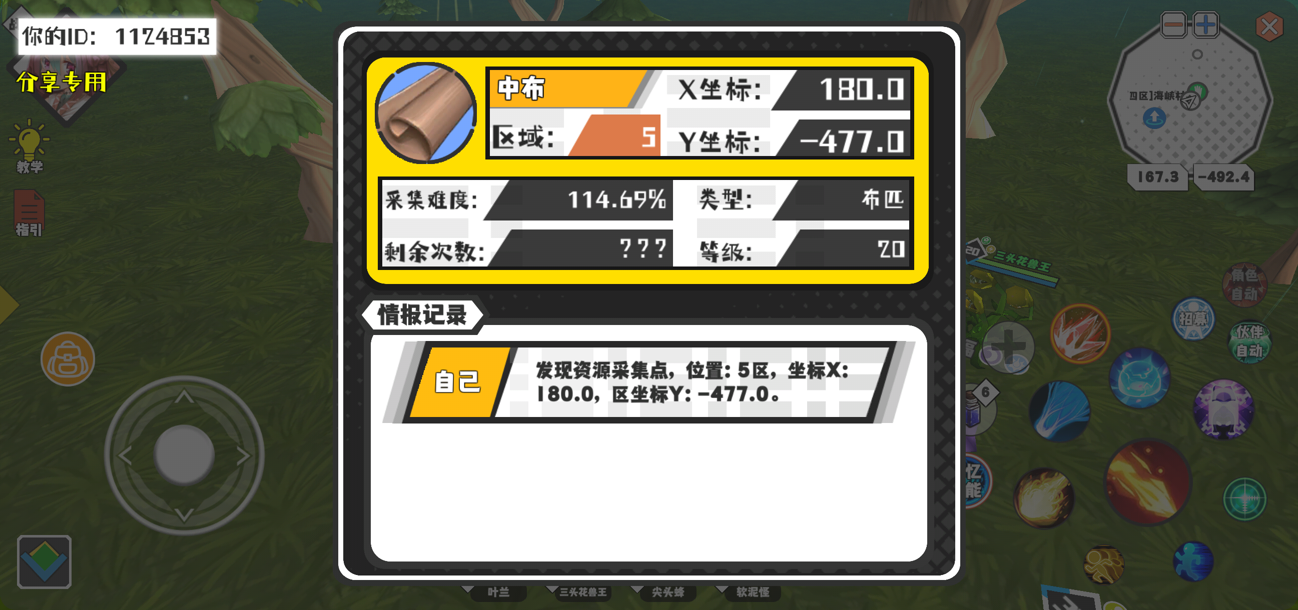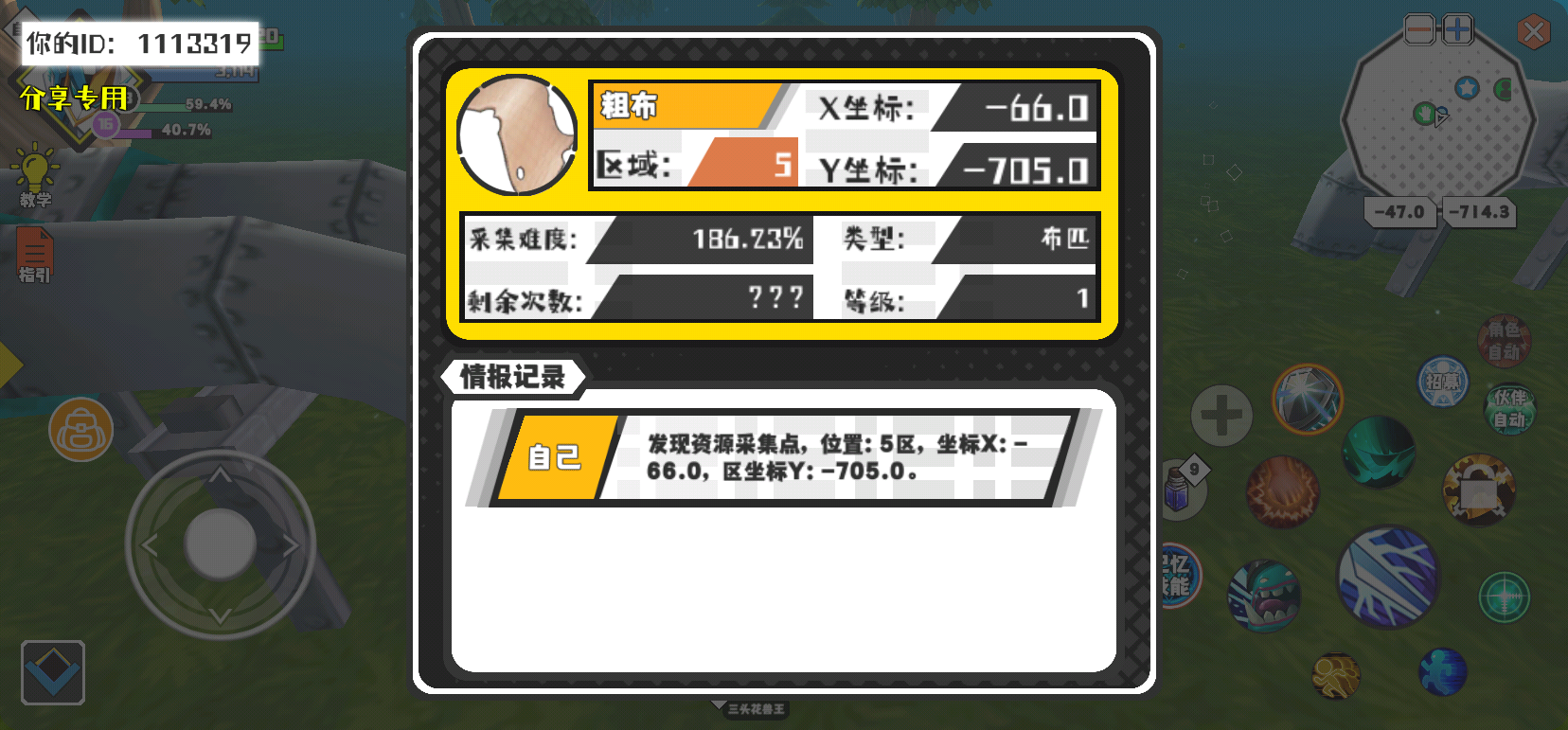 幸运时刻分享! 【资源采集点】8月26日下午1点 - 中布【20级】 【5区】 【X:180.0, Y:-477.0】