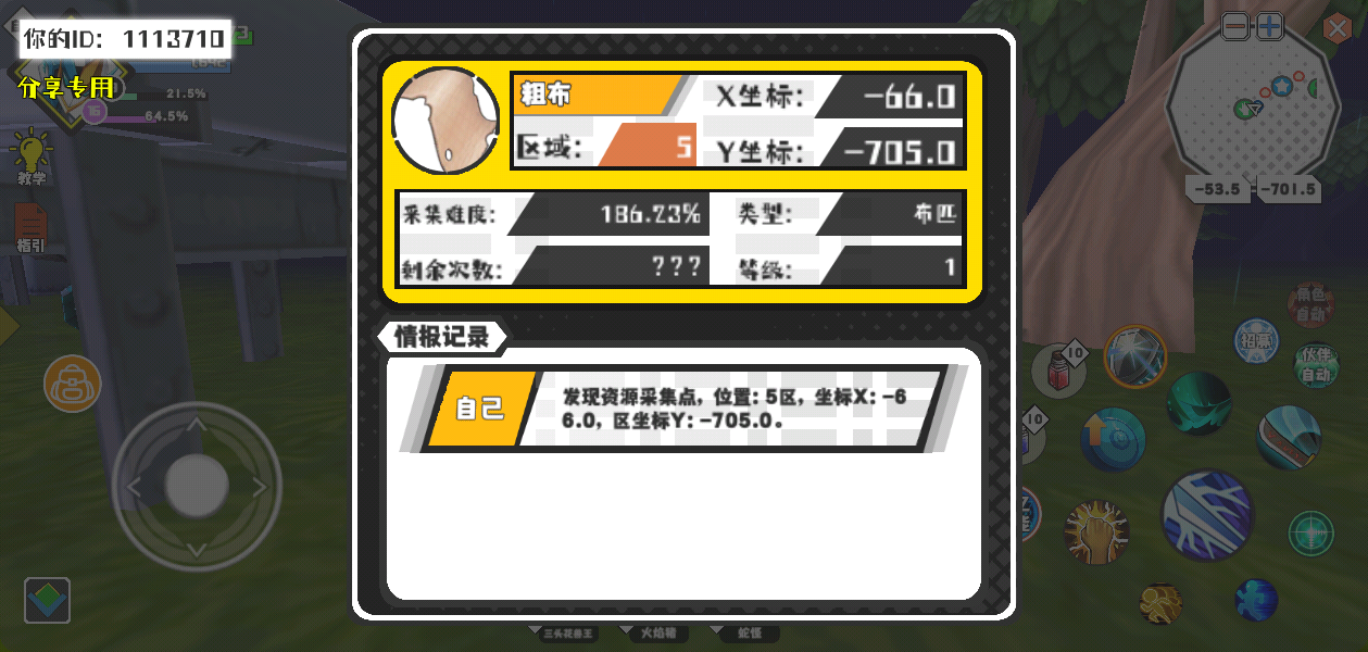 幸运时刻分享! 【资源采集点】8月13日下午4点 - 粗布【1级】 【2区】 【X:-9.0, Y:-73.0】