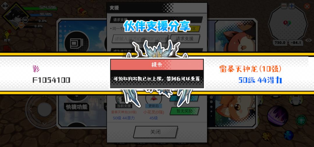 支援者:影(F1054100) 如果遇到困难,可以召唤我的宠物帮忙,召唤方法是进入地图后点击左下角的手机功能>支援>输入【F1054100】>就可以召唤我的宠物! 我的宠物是雷暴灭神龙(10强) 50级 44潜力 技能1:鹰眼 技能2:极速 技能3:极速 技能4:极速 力量配点:145 敏捷配点:100 初阶职业:野蛮 进阶职业:盾卫 #超数据世界