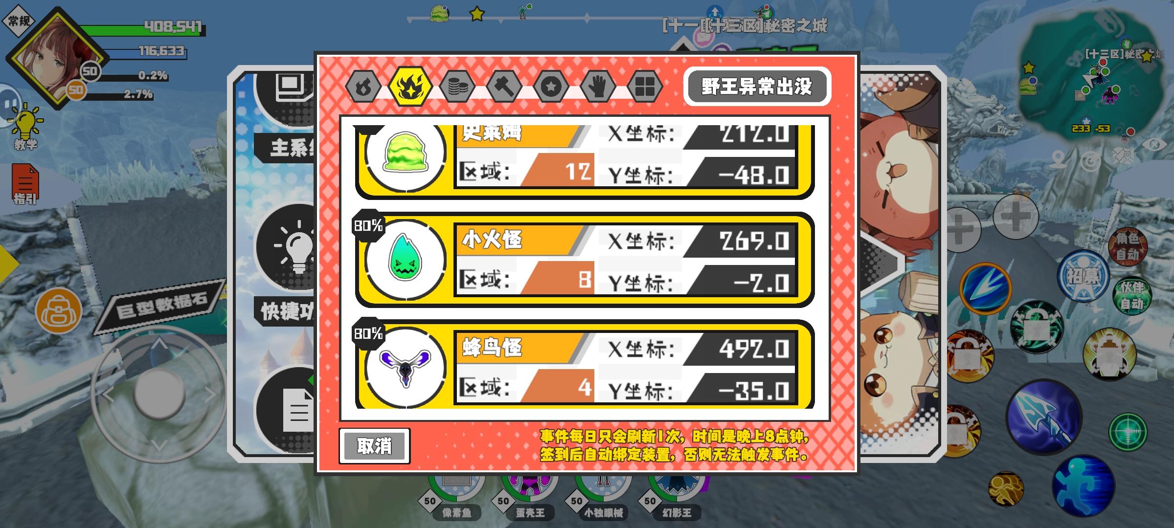猎场差2野王差1,差一个野王应该在4区。有看到的大佬帮忙补一下。 2区有花蕊怪猎场可以抓。 9区有附魔次晶石,10区有秘银矿石可以买。 #超数据世界