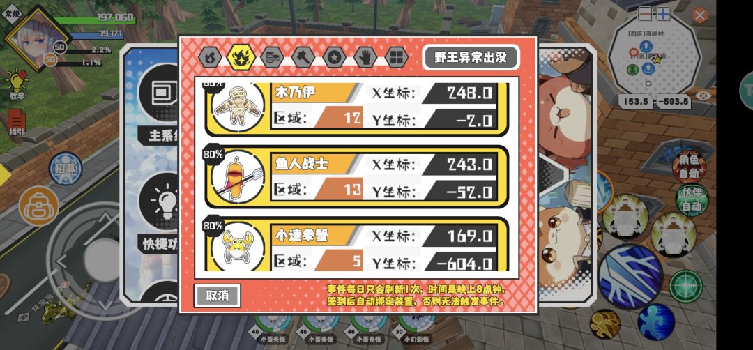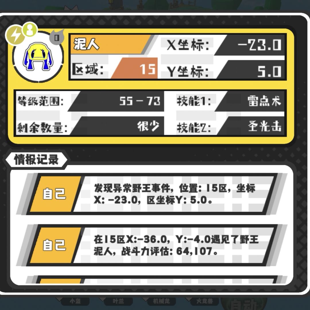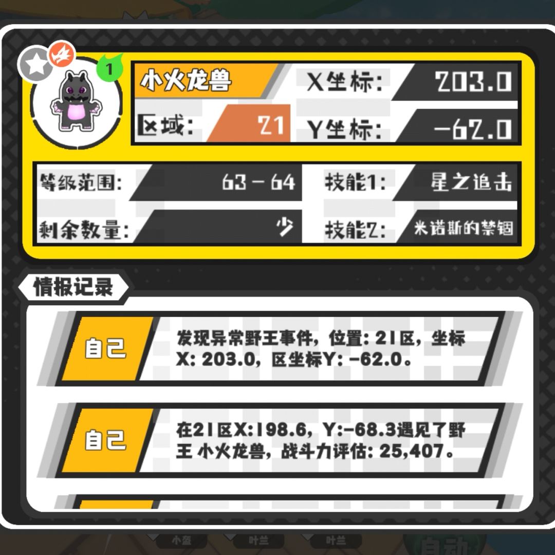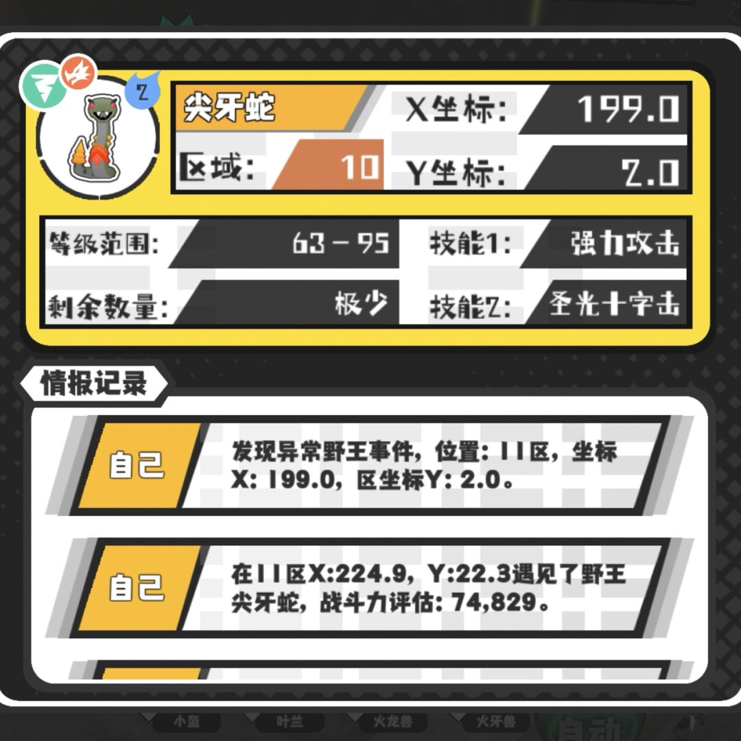 共同点: 1、 事件,每天晚8点刷新。 2、猎场,野王都是在被添加的宠物池里随机生成,并且在大世界中随机生成。 [猎场] : 在猎场生成的一定区域内,会概率刷新猎场怪,出现一只猎场怪后,即视为触发猎场。触发猎场后,猎场怪即可在门票商店中购买。 [注意] 1、猎场怪的刷新频率,刷新范围和售卖价格,跟怪的初始强度与最终强度有关(除了龙宝宝),此两强度高,怪的刷新频率越低,售卖的门票价格越高,反之刷新频