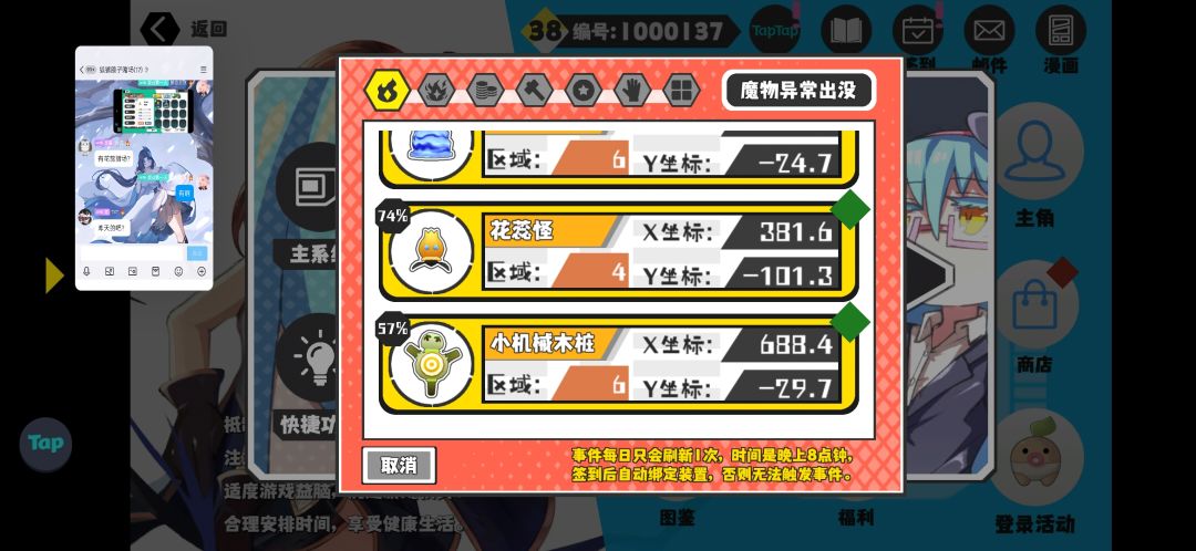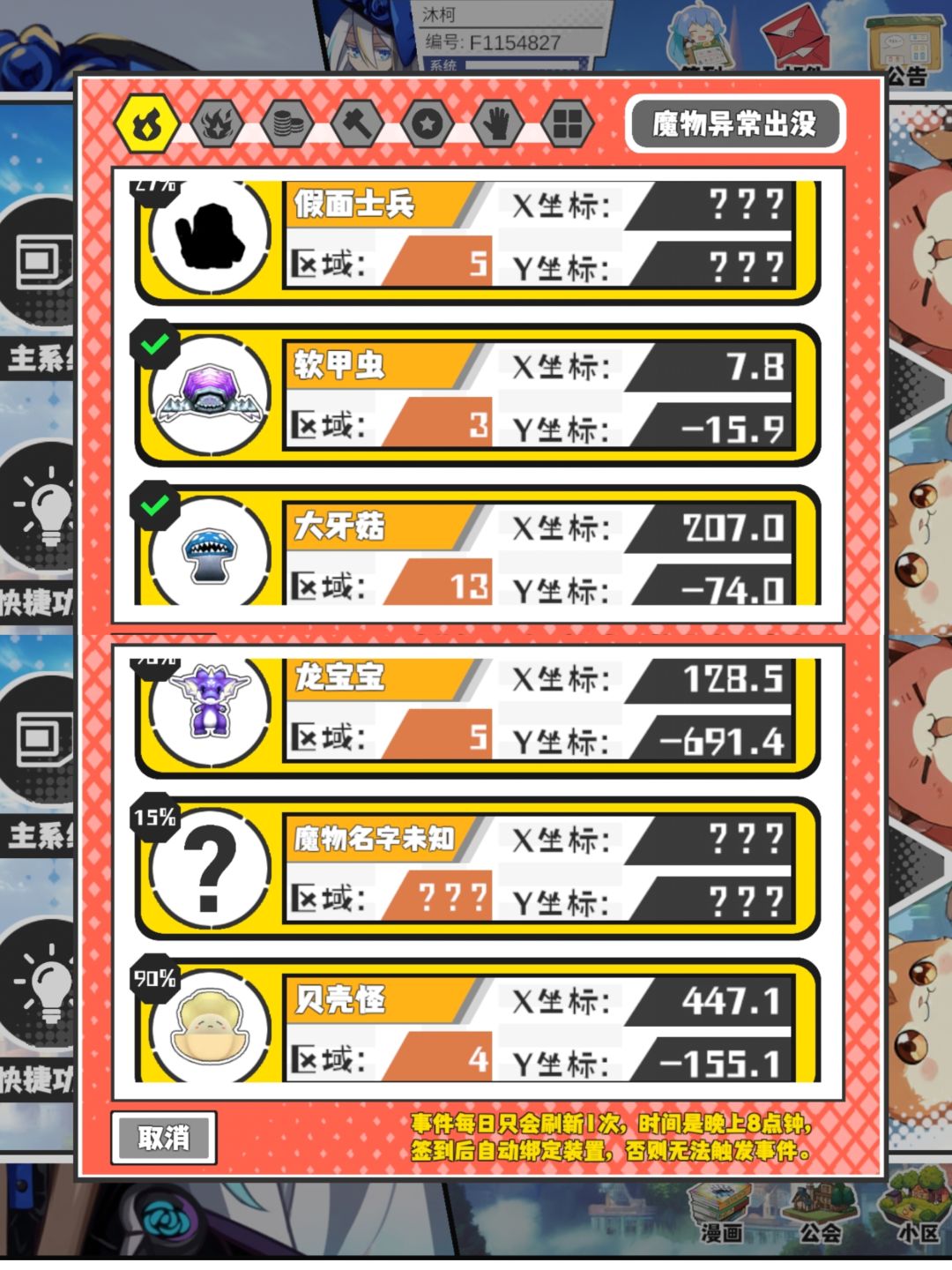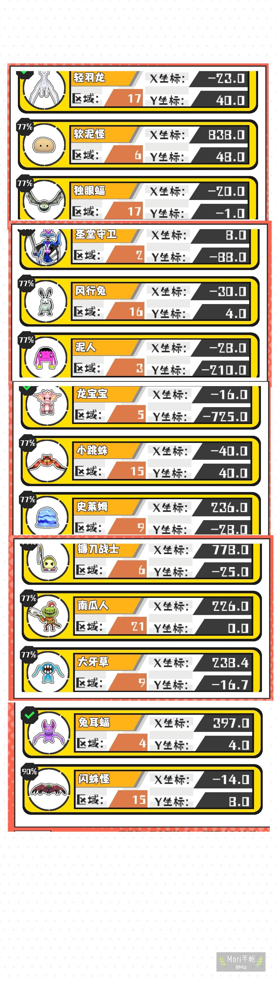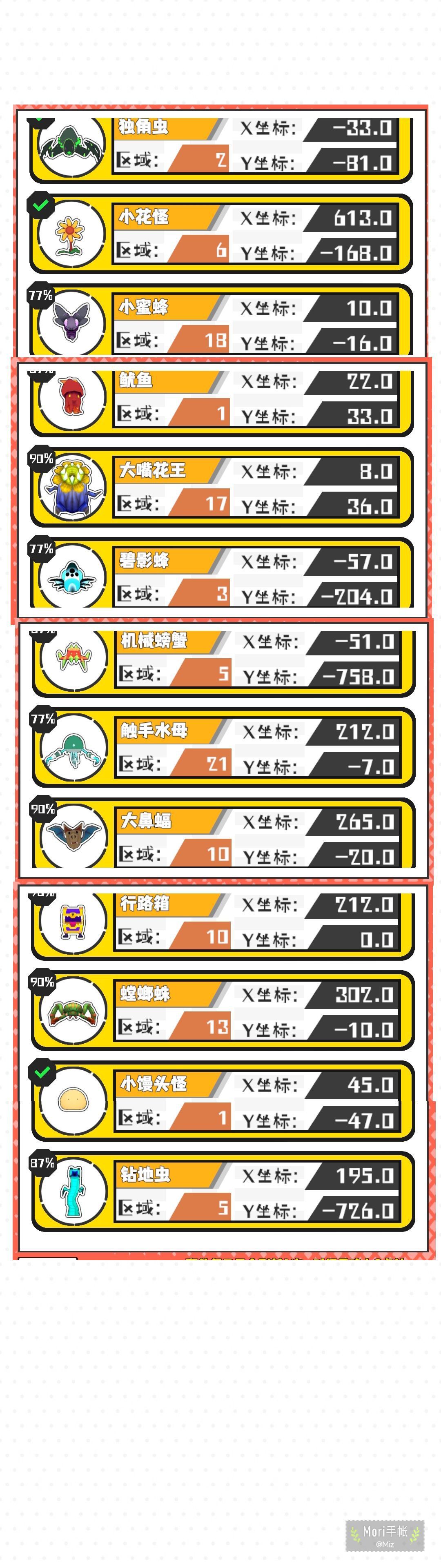 13猎场找到10个,小巨角虫可以抓,缺的那些有大佬遇到补一下,13野王找到12个,有一个在2区死活没碰到,是4-5强的 今天7区有铁丝布,21区有秘银矿,记得去拿一下, 赋能珠制作在2区。 #超数据世界