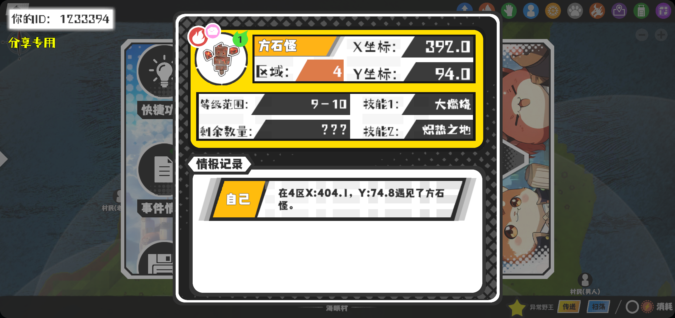 幸运时刻分享! 【魔物异常出没】1月20日上午10点 - 方石怪【强度1】 【4区】 【X:392.0, Y:94.0】#超数据世界