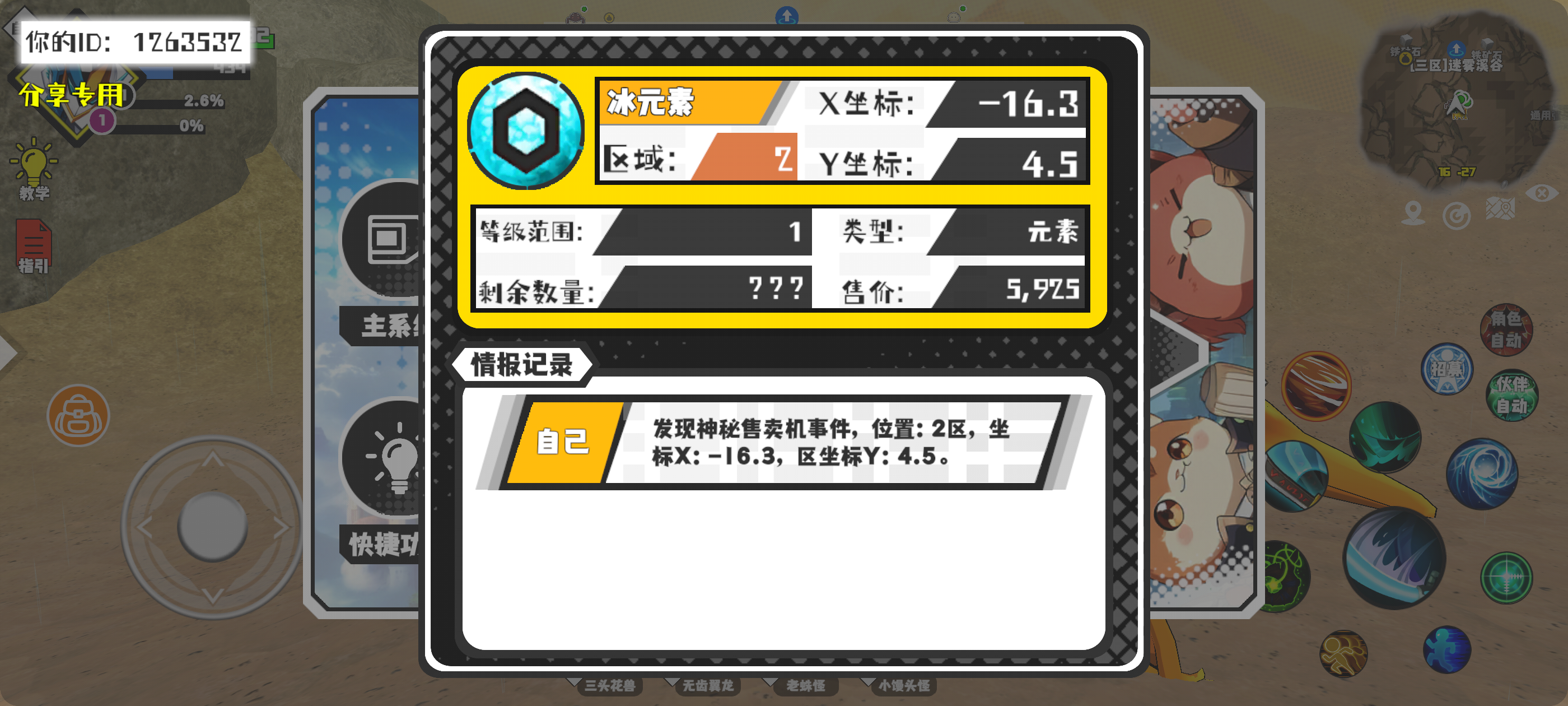 幸运时刻分享! 【神秘售卖机】1月21日下午12点 - 冰元素【1级 】【稀有度:神秘】 【2区】 【X:-16.3, Y:4.5】#超数据世界