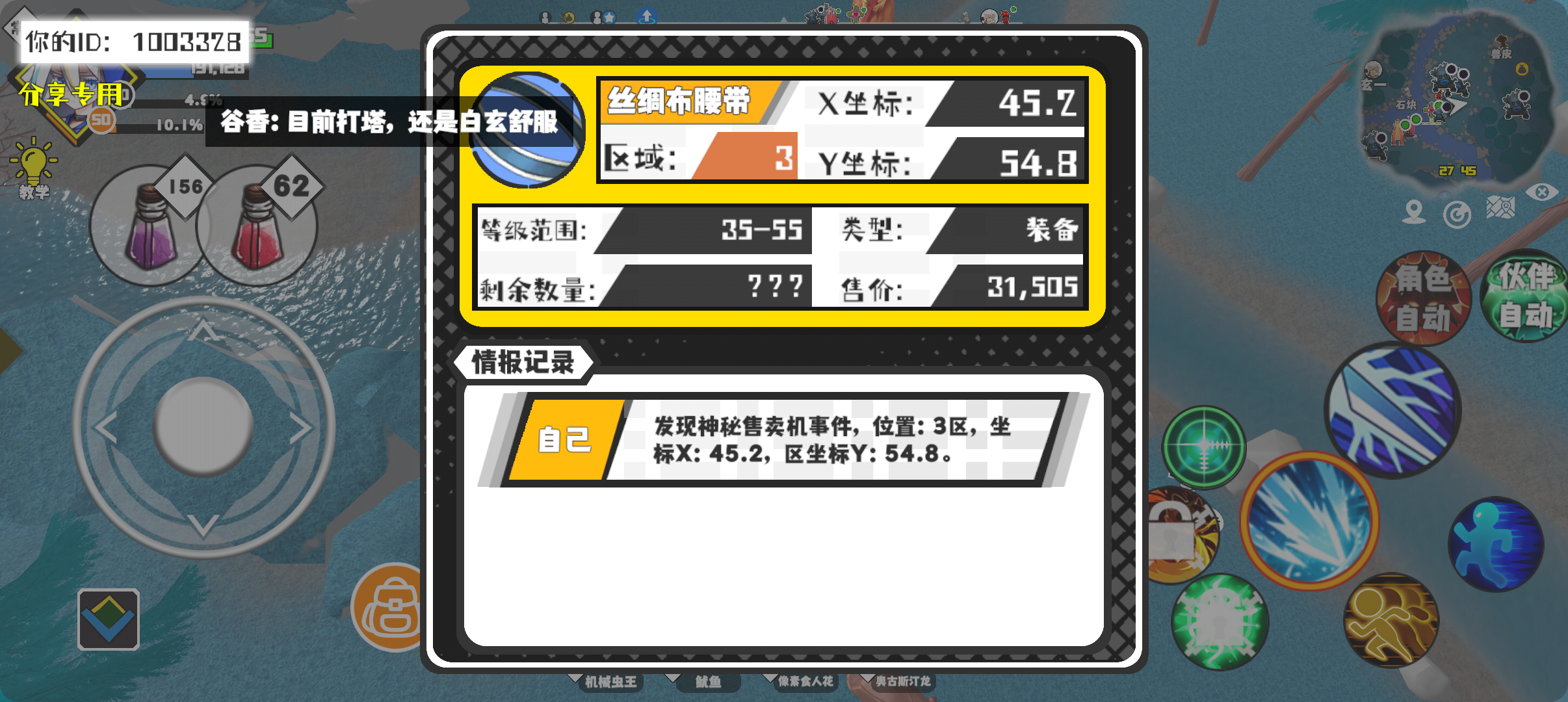 幸运时刻分享! 【神秘售卖机】1月21日下午4点 - 丝绸布腰带【35-55级 】【稀有度:稀有】 【3区】 【X:45.2, Y:54.8】#超数据世界