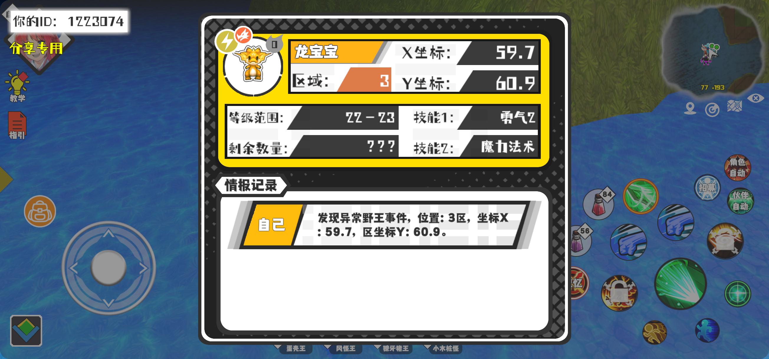 幸运时刻分享! 【野王异常出没】1月23日上午7点 - 龙宝宝【强度0】 【3区】 【X:59.7, Y:60.9】#超数据世界