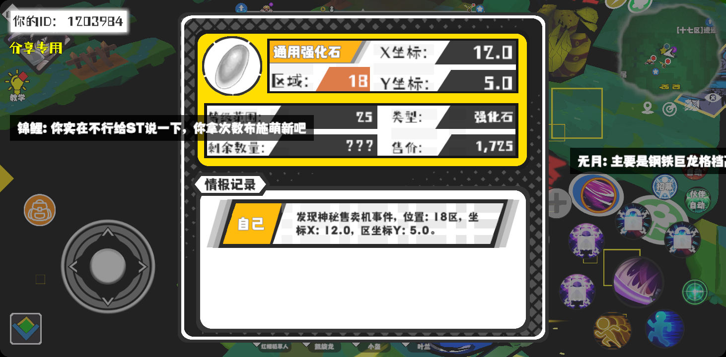 幸运时刻分享! 【神秘售卖机】12月30日下午4点 - 通用强化石【25级 】【稀有度:稀有】 【18区】 【X:12.0, Y:5.0】#超数据世界