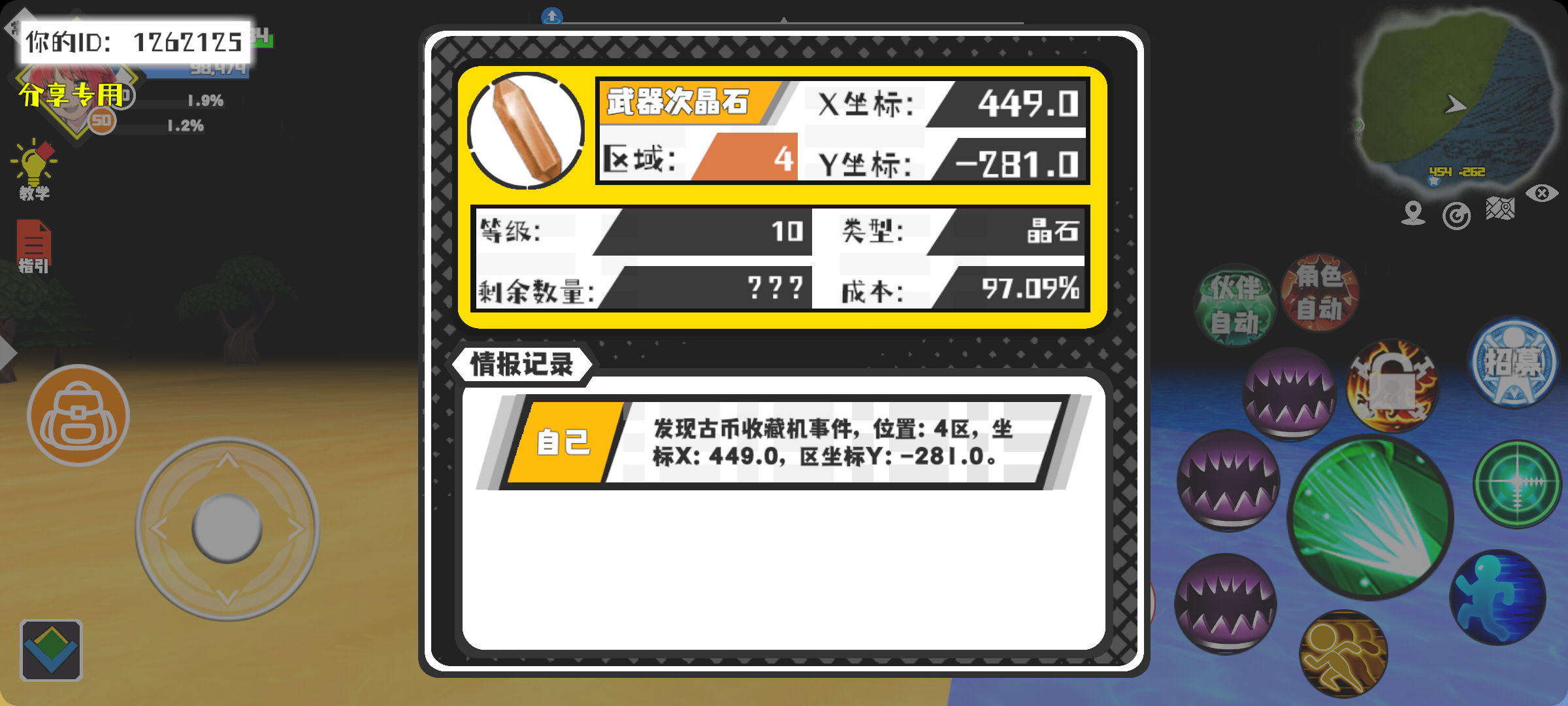 幸运时刻分享! 【古币收藏机】1月23日下午4点 - 武器次晶石 【4区】 【X:449.0, Y:-281.0】#超数据世界
