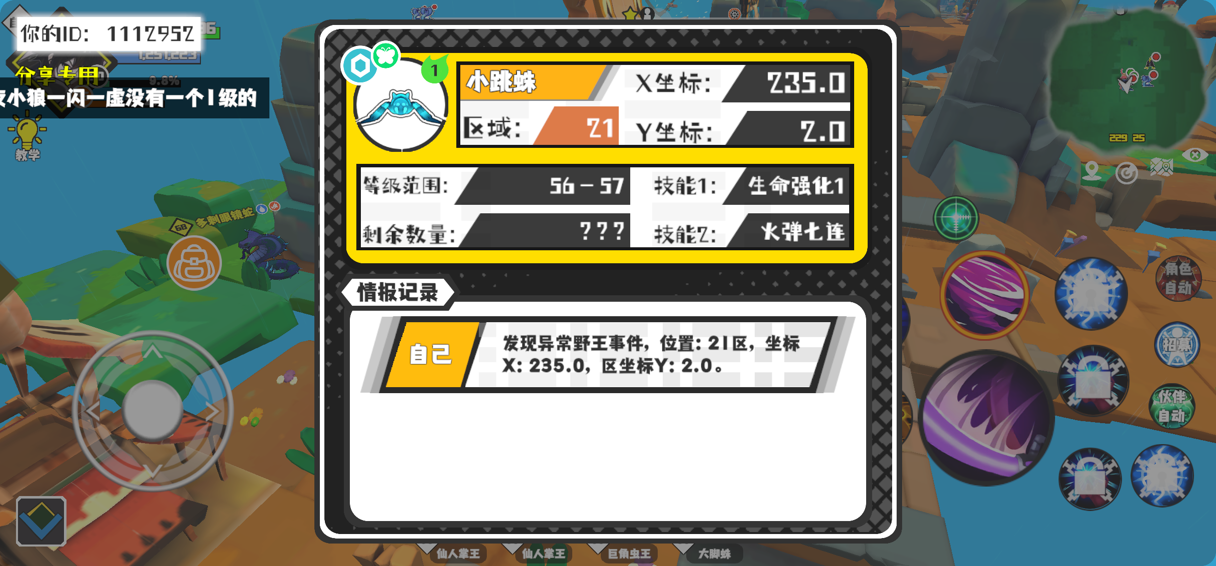 #超数据世界 幸运时刻分享! 【野王异常出没】1月25日下午4点 - 小跳蛛【强度1】 【21区】 【X:235.0, Y:2.0】