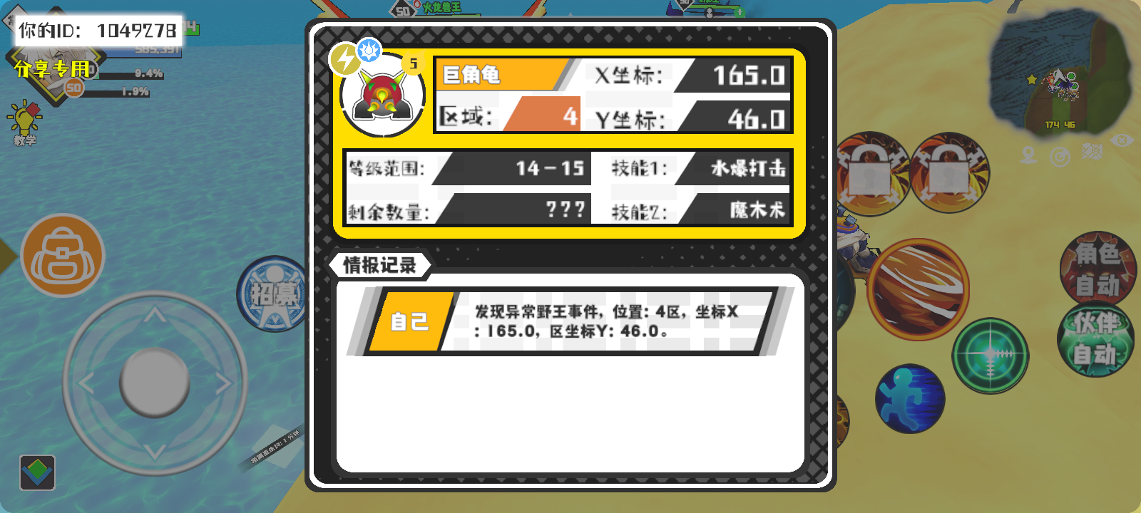 幸运时刻分享! 【野王异常出没】1月26日下午1点 - 巨角龟【强度5】 【4区】 【X:165.0, Y:46.0】#超数据世界