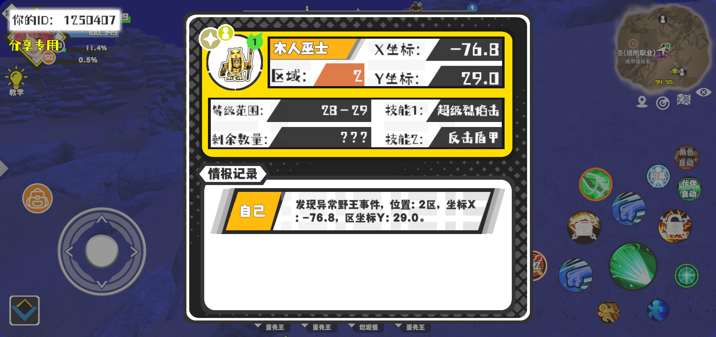 幸运时刻分享! 【野王异常出没】1月27日下午5点 - 木人巫士【强度1】 【2区】 【X:-76.8, Y:29.0】#超数据世界