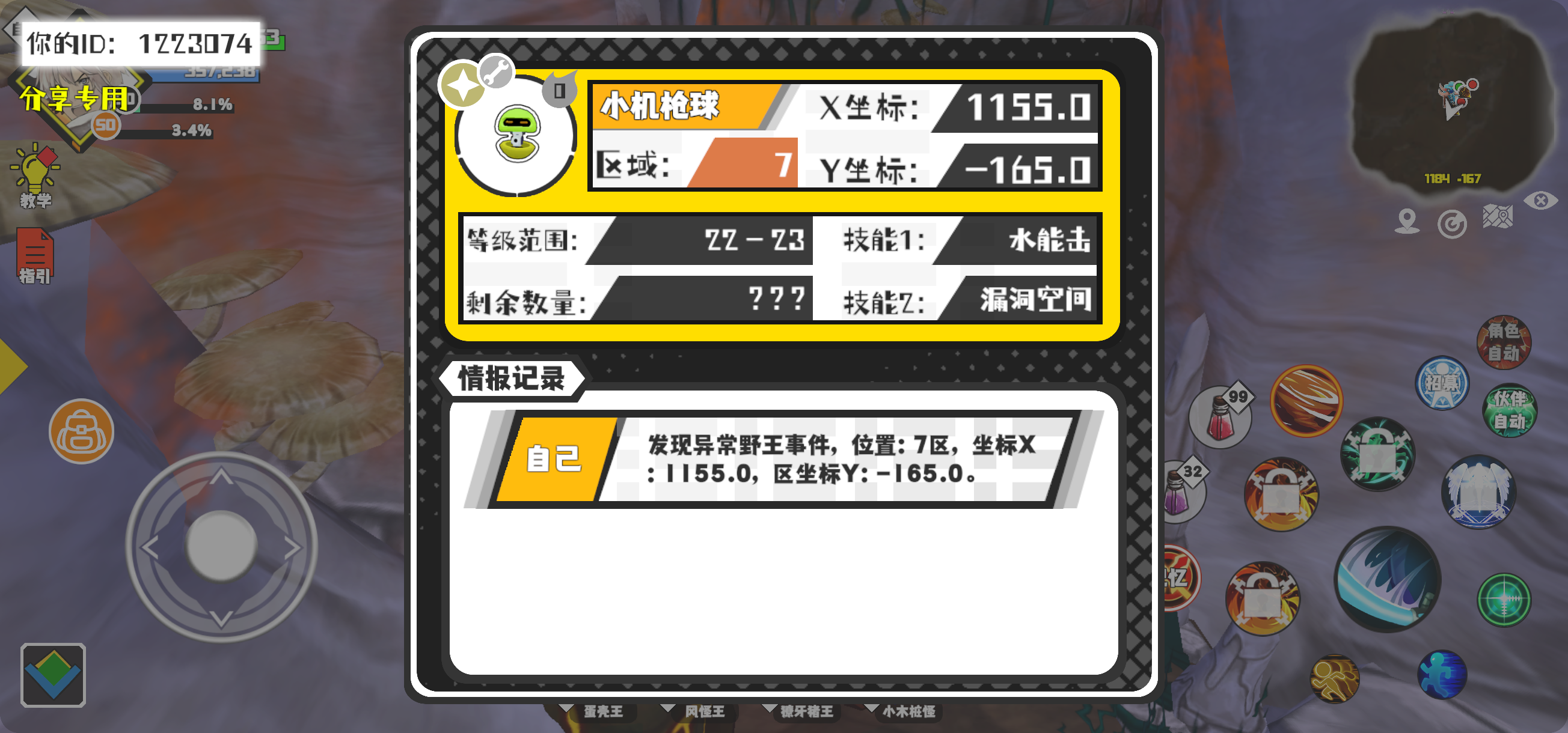 幸运时刻分享! 【野王异常出没】1月28日下午2点 - 小机枪球【强度0】 【7区】 【X:1155.0, Y:-165.0】#超数据世界