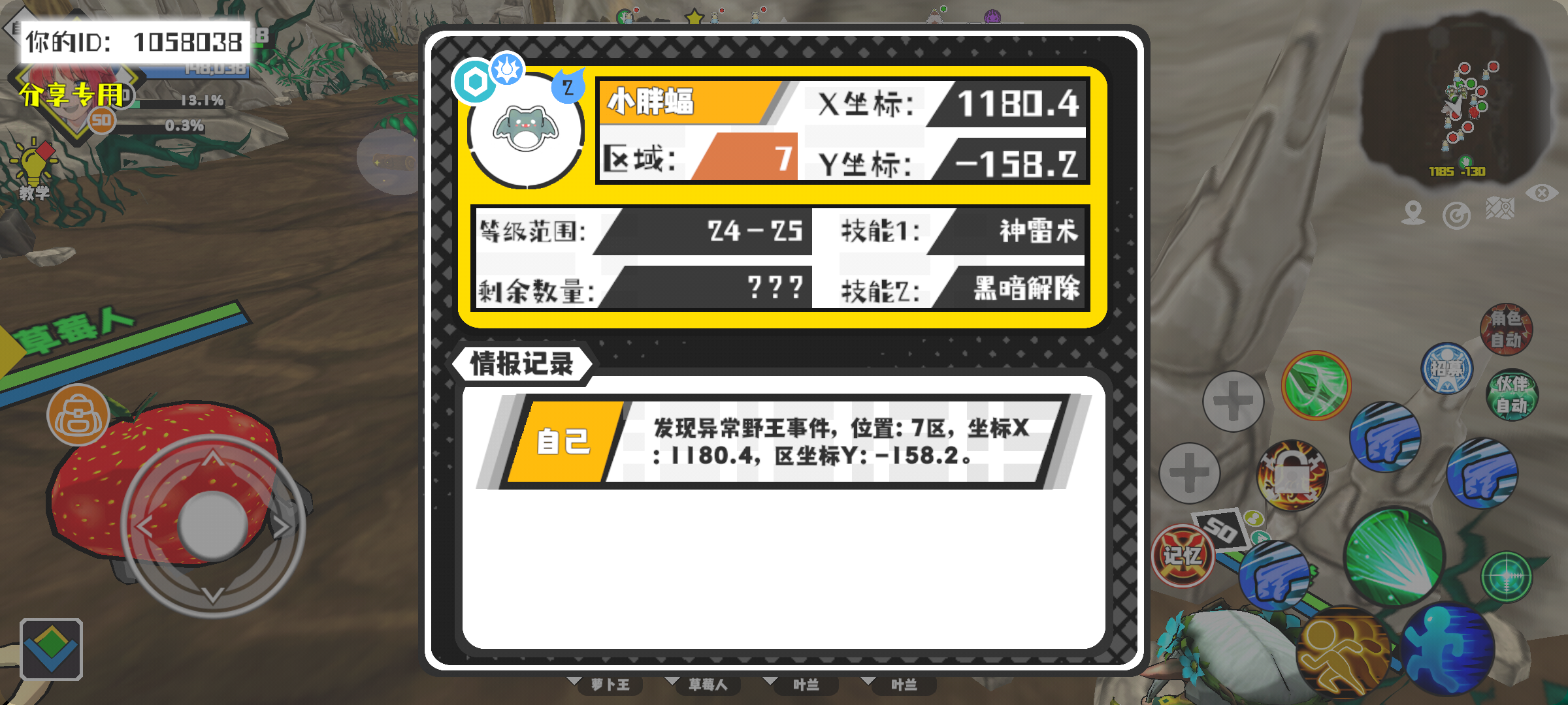 幸运时刻分享! 【野王异常出没】12月29日上午9点 - 小胖蝠【强度2】 【7区】 【X:1180.4, Y:-158.2】#超数据世界