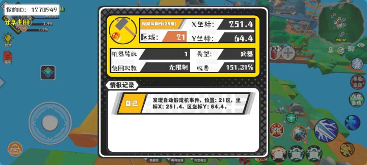 #超数据世界 幸运时刻分享! 【自动锻造机】4月23日上午12点 - 赋能珠制作(25级)【1级机器】 【21区】 【X:251.4, Y:64.4】