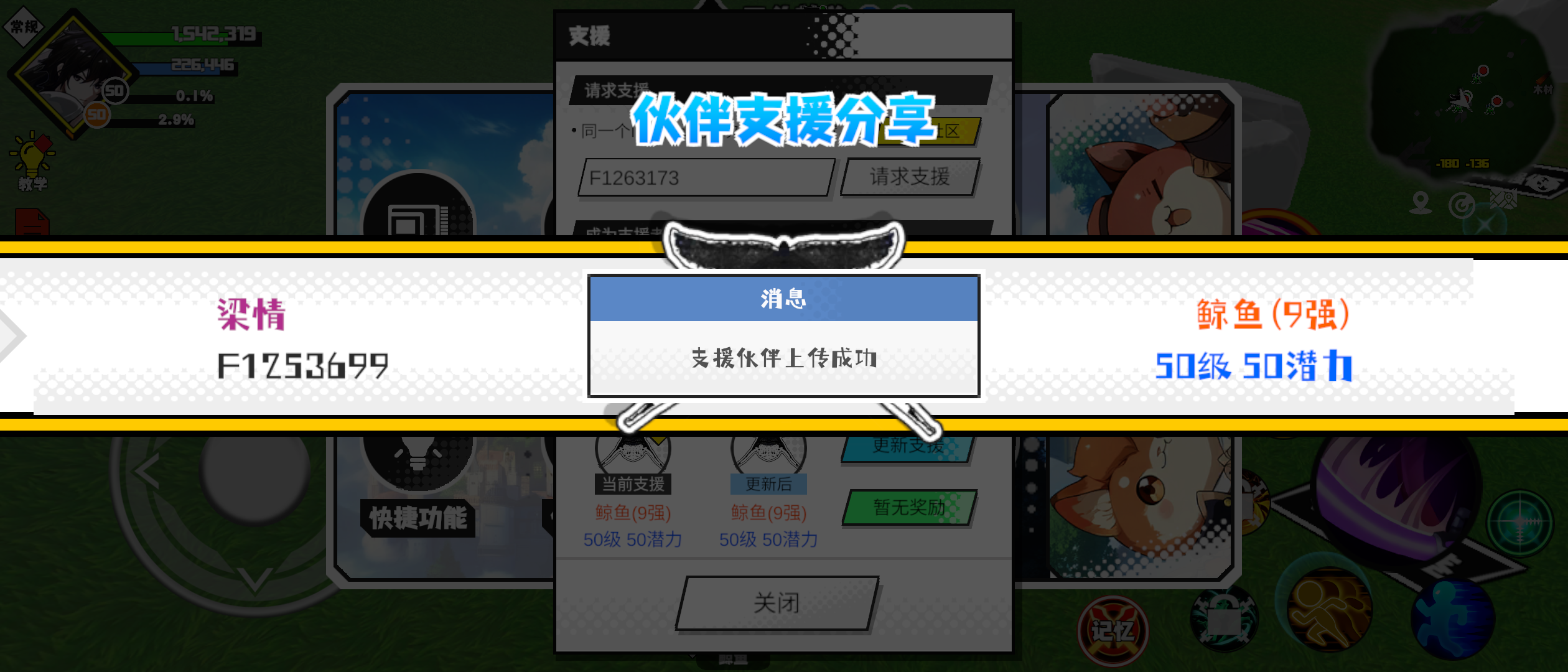 支援者:梁情(F1253699)如果遇到困难,可以召唤我的宠物帮忙,召唤方法是进入地图后点击左下角的手机功能>支援>输入【F1253699】>就可以召唤我的宠物!我的宠物是鲸鱼(9强)50级 50潜力技能1:大烟幕弹技能2:水灵技能3:光祈术技能4:自然再生敏捷配点:116智慧配点:129初阶职业:牧师进阶职业:盾卫#超数据世界