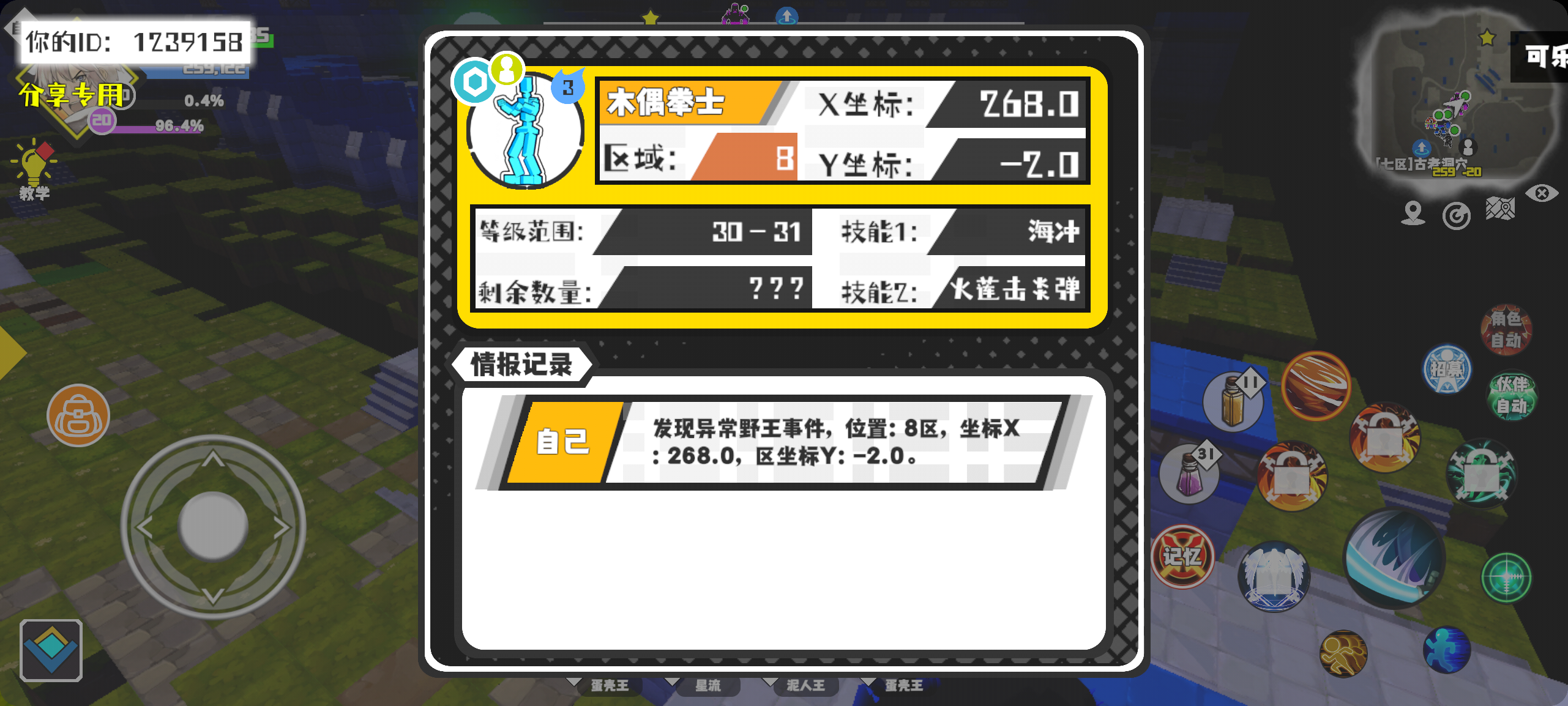 幸运时刻分享! 【野王异常出没】2月1日下午12点 - 木偶拳士【强度3】 【8区】 【X:268.0, Y:-2.0】#超数据世界