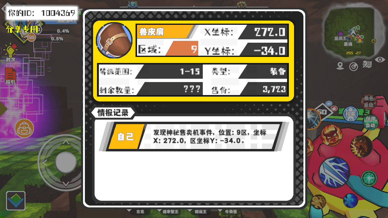幸运时刻分享! 【神秘售卖机】2月1日下午7点 - 兽皮肩【1-15级 】【稀有度:稀有】 【9区】 【X:272.0, Y:-34.0】#超数据世界