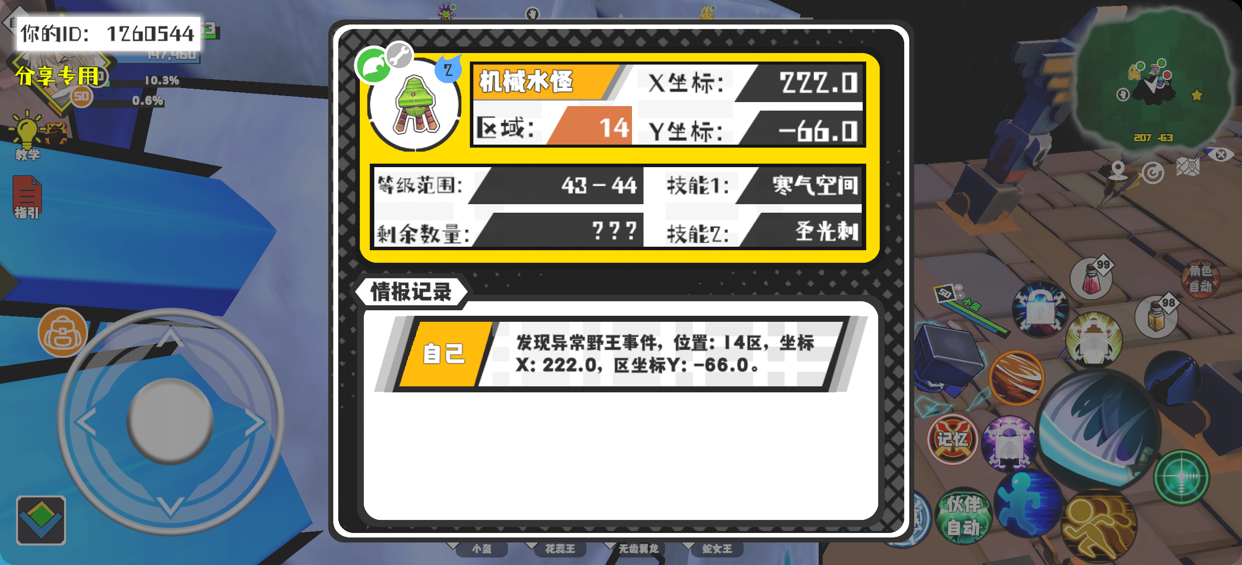 #超数据世界 幸运时刻分享! 【野王异常出没】2月1日下午2点 - 机械水怪【强度2】 【14区】 【X:222.0, Y:-66.0】