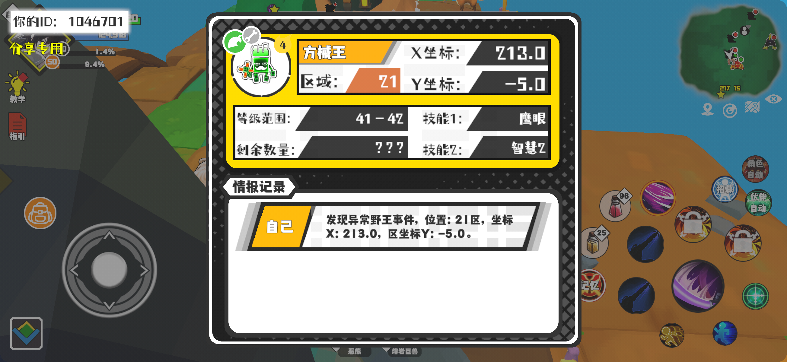 幸运时刻分享! 【野王异常出没】2月1日下午11点 - 方械王【强度4】 【21区】 【X:213.0, Y:-5.0】#超数据世界