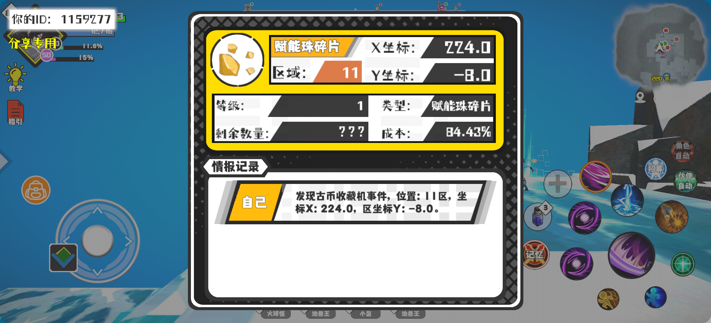 幸运时刻分享! 【古币收藏机】2月6日下午12点 - 赋能珠碎片 【11区】 【X:224.0, Y:-8.0】#超数据世界