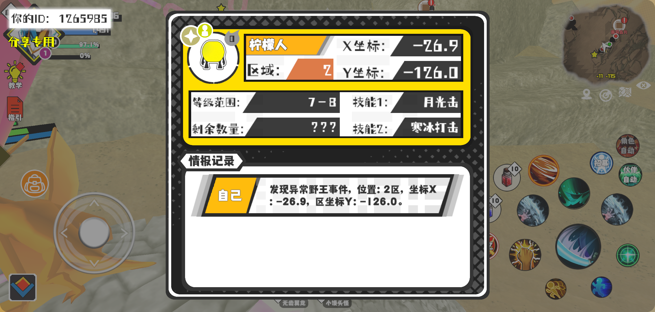 幸运时刻分享! 【野王异常出没】2月6日下午4点 - 柠檬人【强度0】 【2区】 【X:-26.9, Y:-126.0】#超数据世界