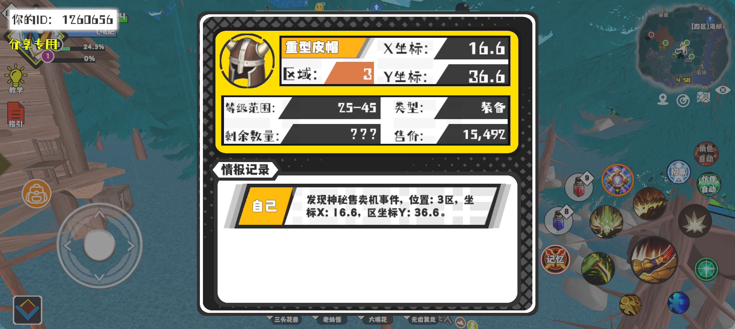 幸运时刻分享! 【神秘售卖机】1月4日上午10点 - 重型皮帽【25-45级 】【稀有度:神秘】 【3区】 【X:16.6, Y:36.6】#超数据世界