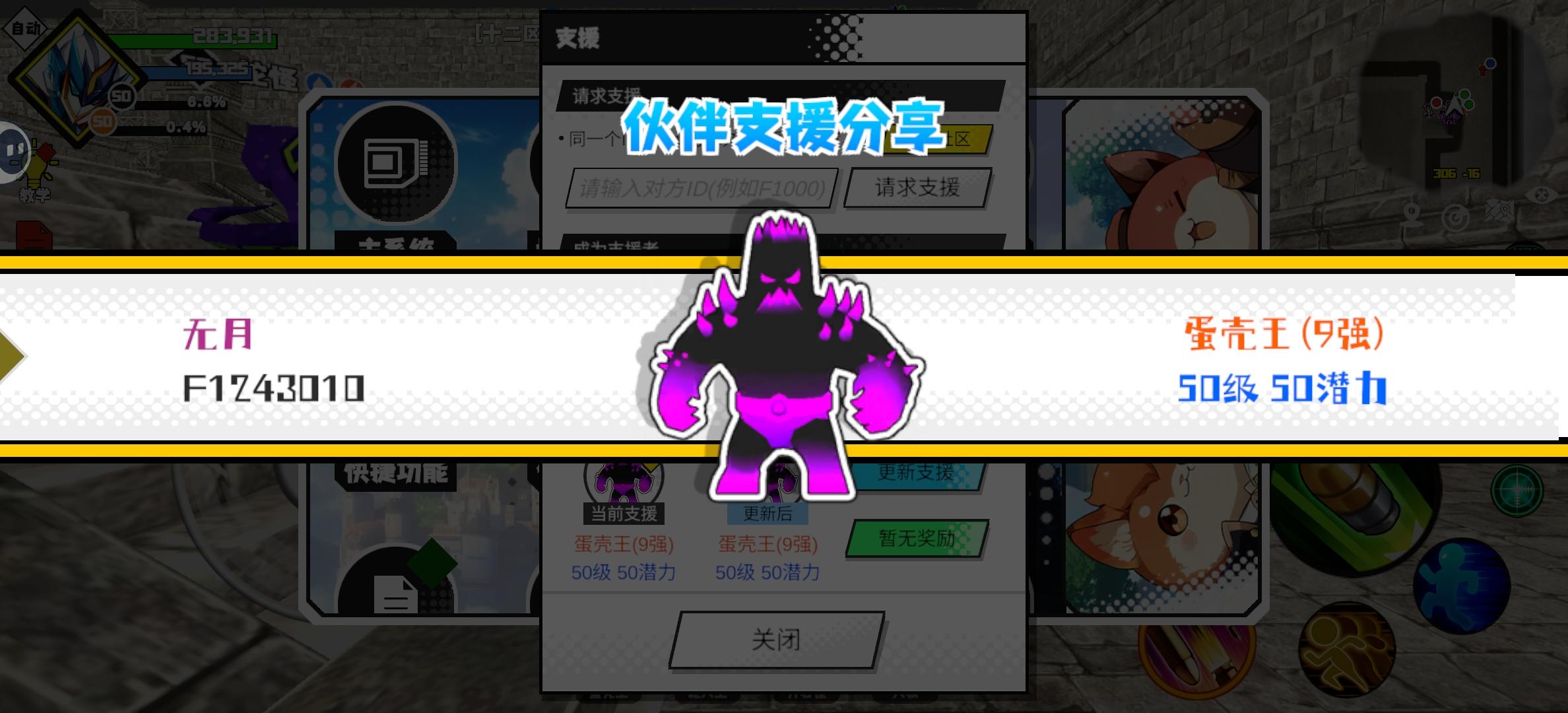 支援者:无月(F1243010)如果遇到困难,可以召唤我的宠物帮忙,召唤方法是进入地图后点击左下角的手机功能>支援>输入【F1243010】>就可以召唤我的宠物!我的宠物是蛋壳王(9强)50级 50潜力技能1:黑魔破技能2:黑魔破技能3:黑魔破技能4:黑魔破智慧配点:245初阶职业:鬼咒进阶职业:海神#超数据世界