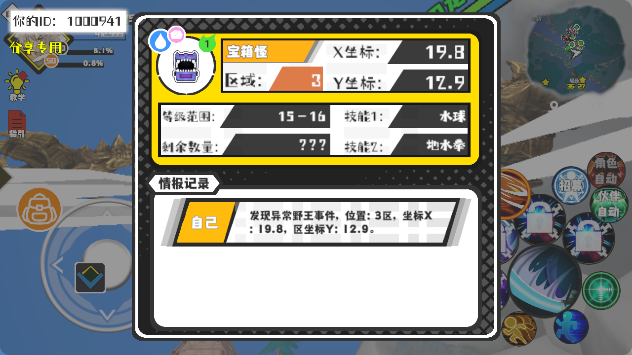 幸运时刻分享! 【野王异常出没】1月11日下午10点 - 宝箱怪【强度1】 【3区】 【X:19.8, Y:12.9】#超数据世界