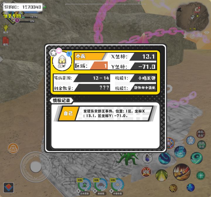 幸运时刻分享! 【野王异常出没】3月6日上午12点 - 小兵【强度2】 【1区】 【X:13.1, Y:-71.0】#超数据世界 #超数据世界