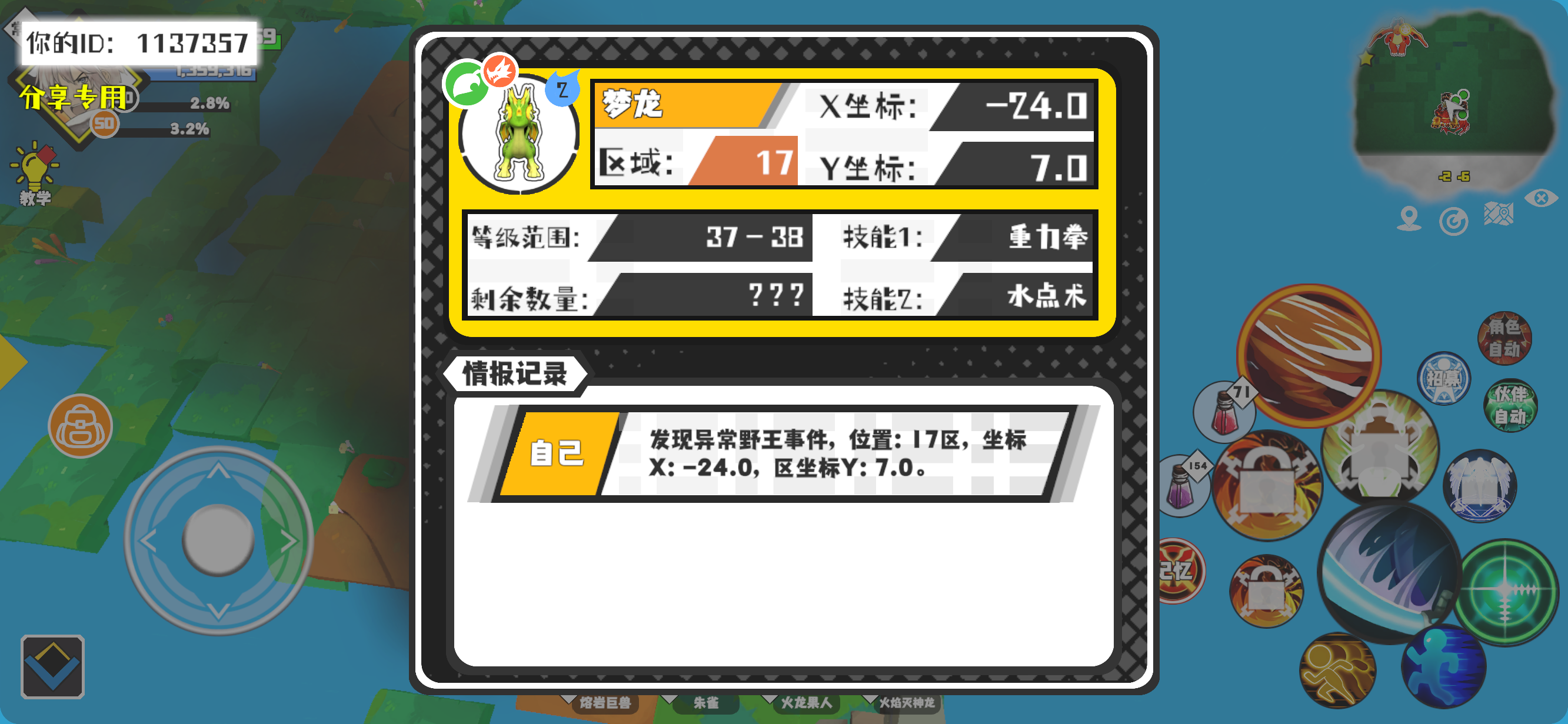 幸运时刻分享! 【野王异常出没】1月14日上午10点 - 梦龙【强度2】 【17区】 【X:-24.0, Y:7.0】#超数据世界