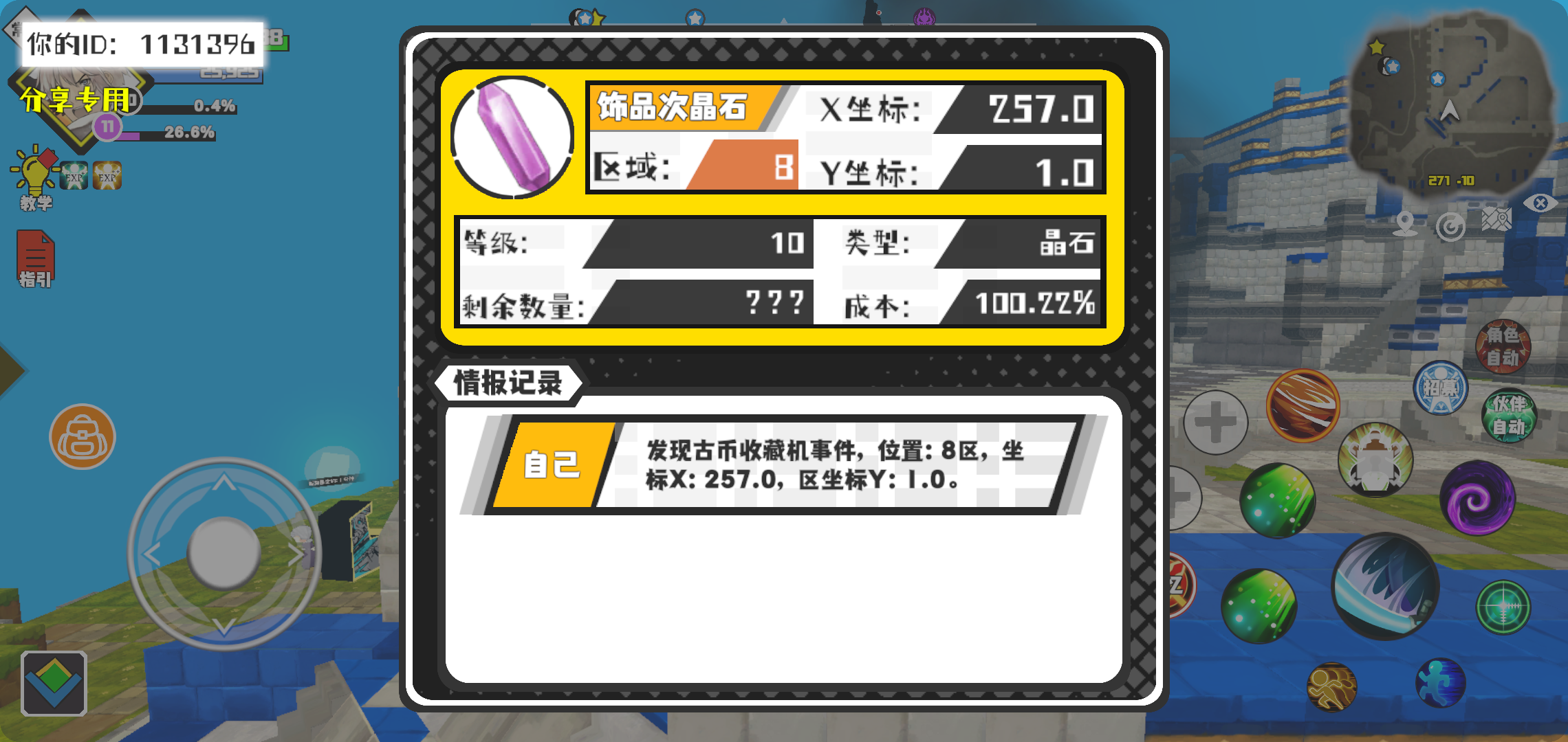 幸运时刻分享! 【古币收藏机】1月14日下午6点 - 饰品次晶石 【8区】 【X:257.0, Y:1.0】#超数据世界