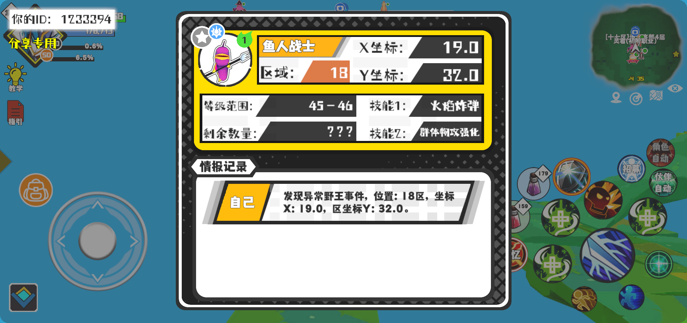 幸运时刻分享! 【野王异常出没】1月15日上午10点 - 鱼人战士【强度1】 【18区】 【X:19.0, Y:32.0】#超数据世界