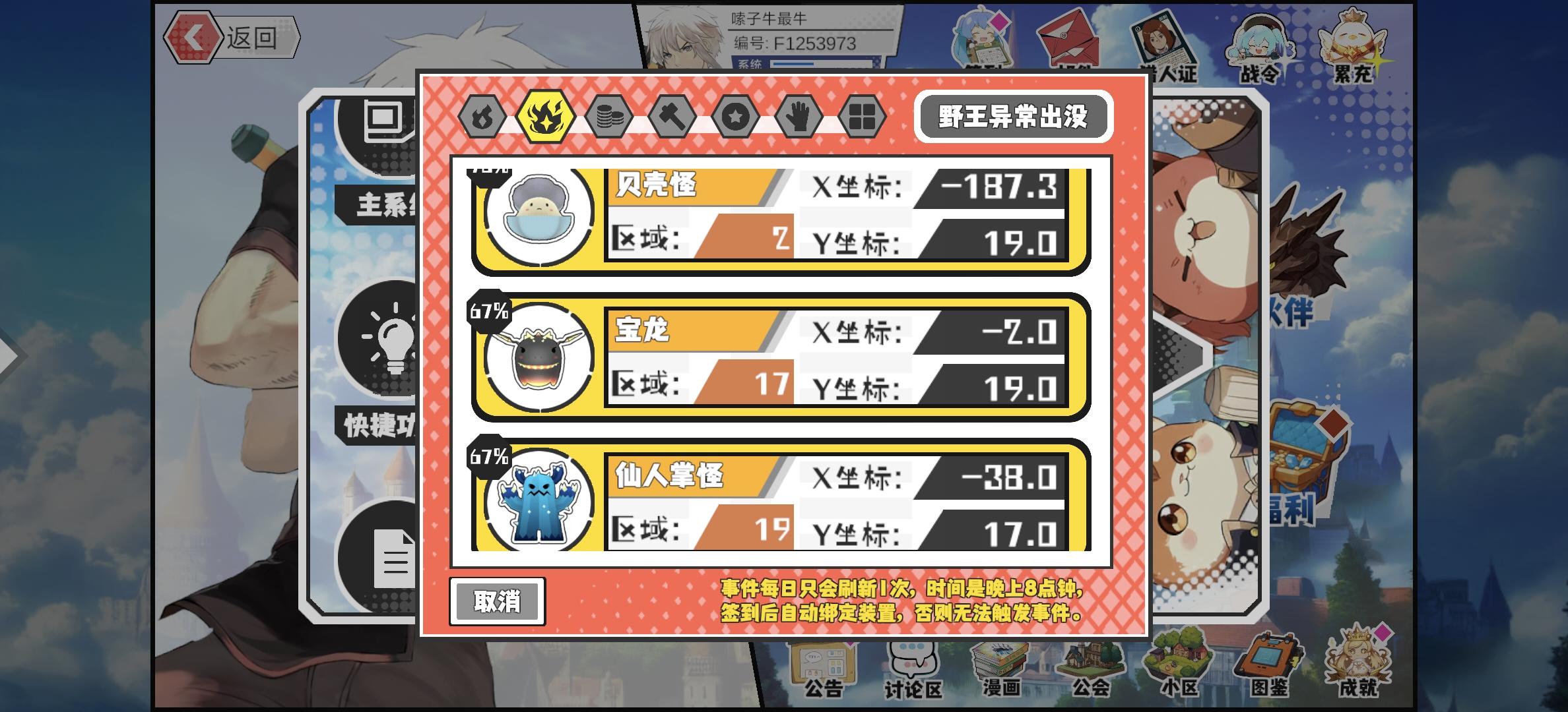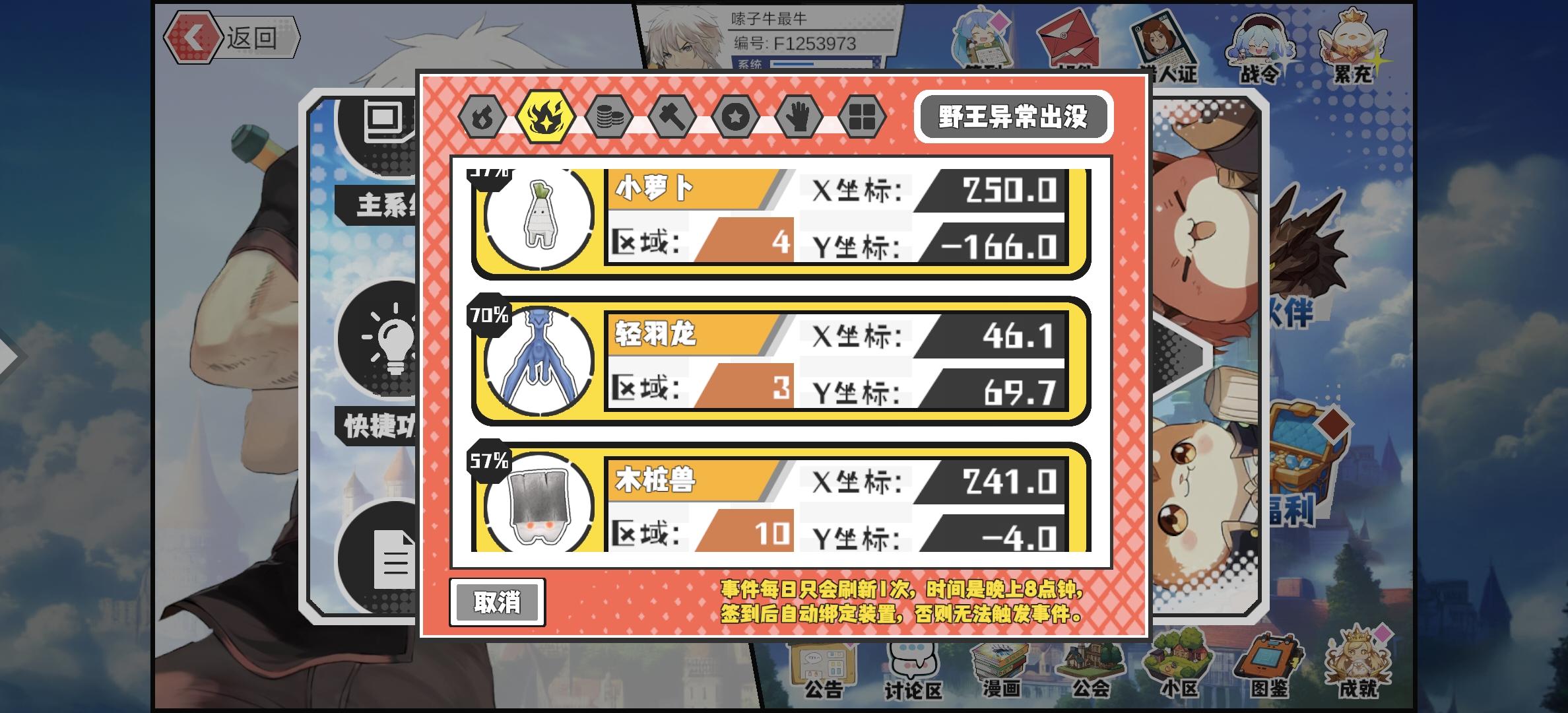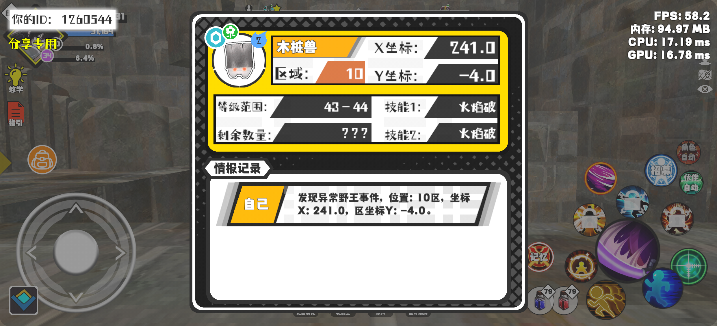 #超数据世界 幸运时刻分享! 【野王异常出没】1月15日下午10点 - 木桩兽【强度2】 【10区】 【X:241.0, Y:-4.0】