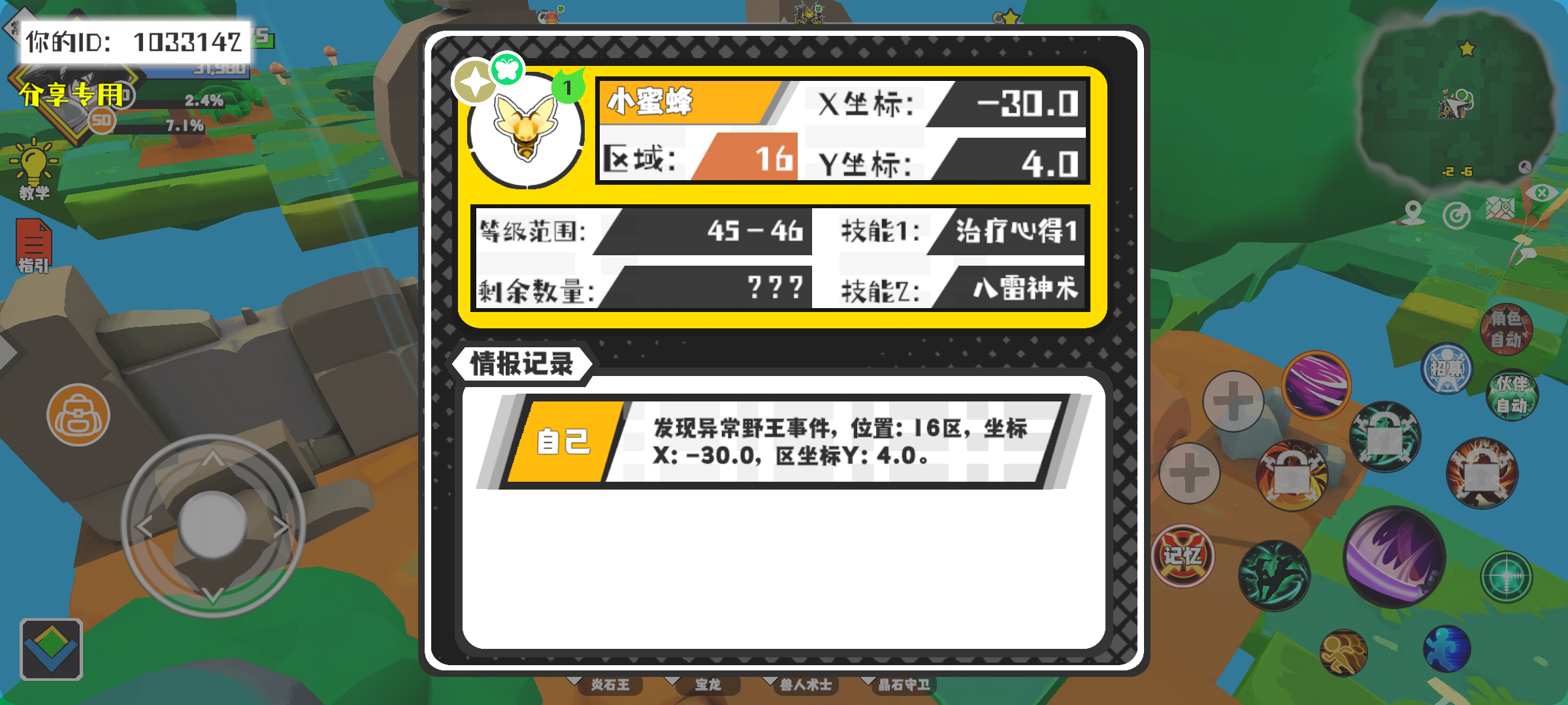 幸运时刻分享! 【野王异常出没】12月22日上午9点 - 小蜜蜂【强度1】 【16区】 【X:-30.0, Y:4.0】#超数据世界