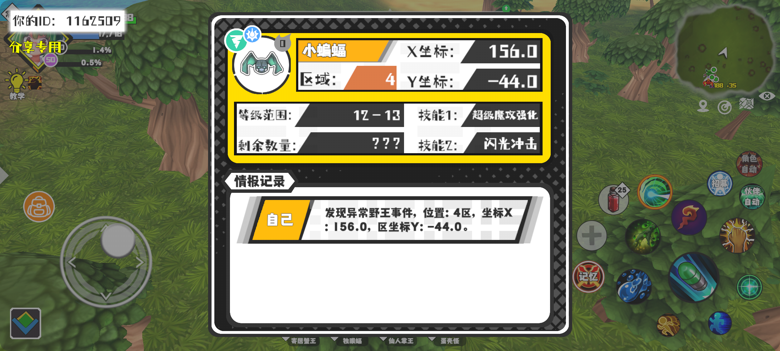 幸运时刻分享! 【野王异常出没】12月23日下午12点 - 小蝙蝠【强度0】 【4区】 【X:156.0, Y:-44.0】#超数据世界