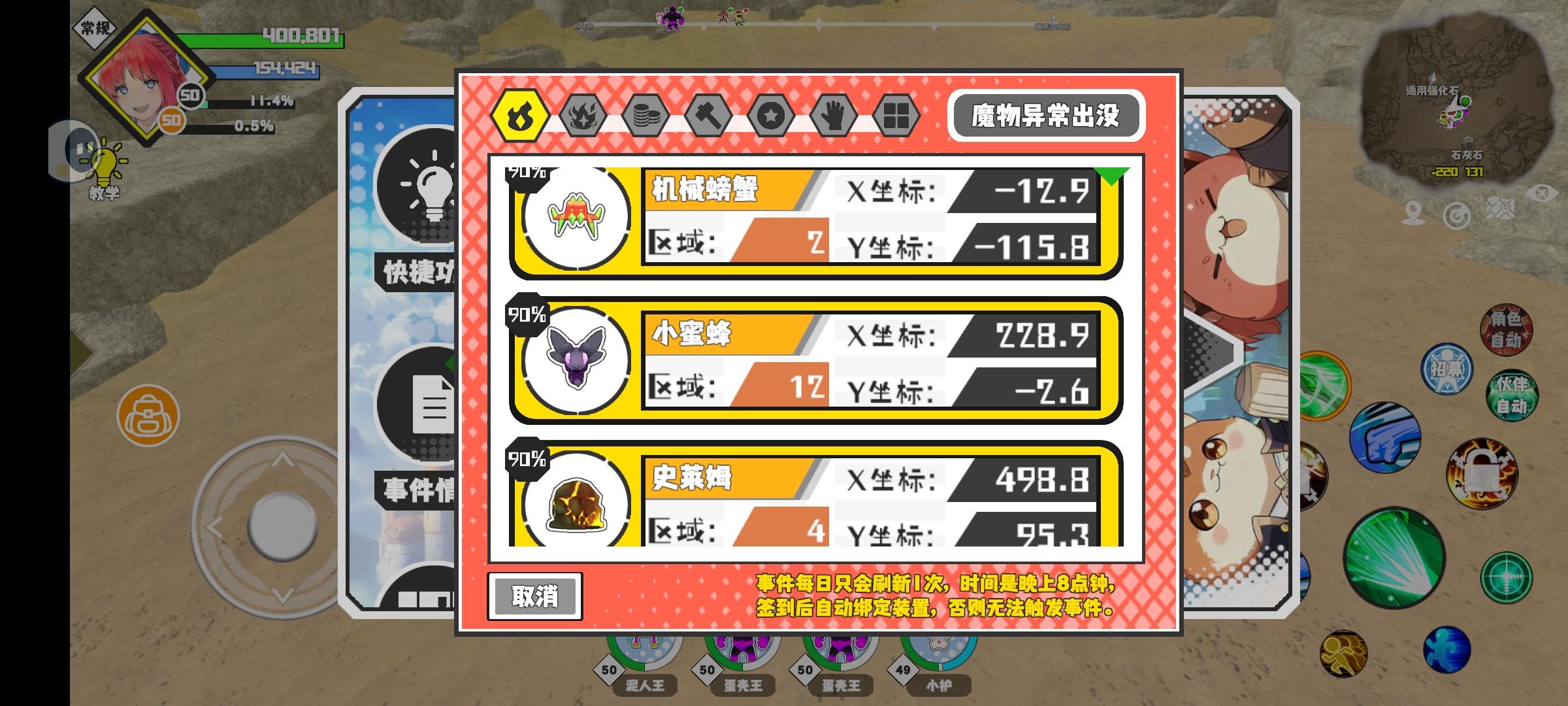幸运时刻分享! 【魔物异常出没】12月24日上午11点 - 机械螃蟹【强度0】 【2区】 【X:-42.3, Y:-96.5】#超数据世界