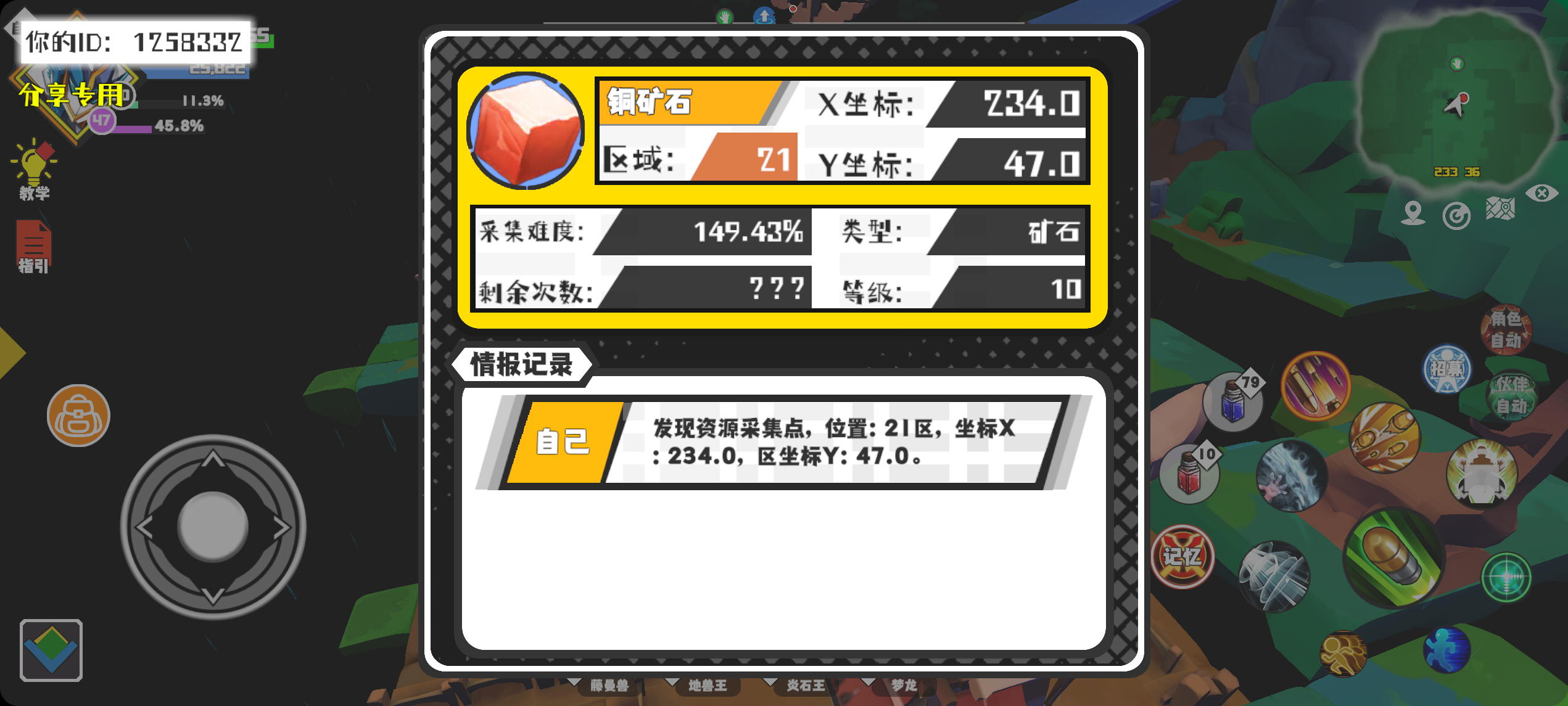 幸运时刻分享! 【资源采集点】12月25日下午12点 - 铜矿石【10级】 【21区】 【X:234.0, Y:47.0】#超数据世界