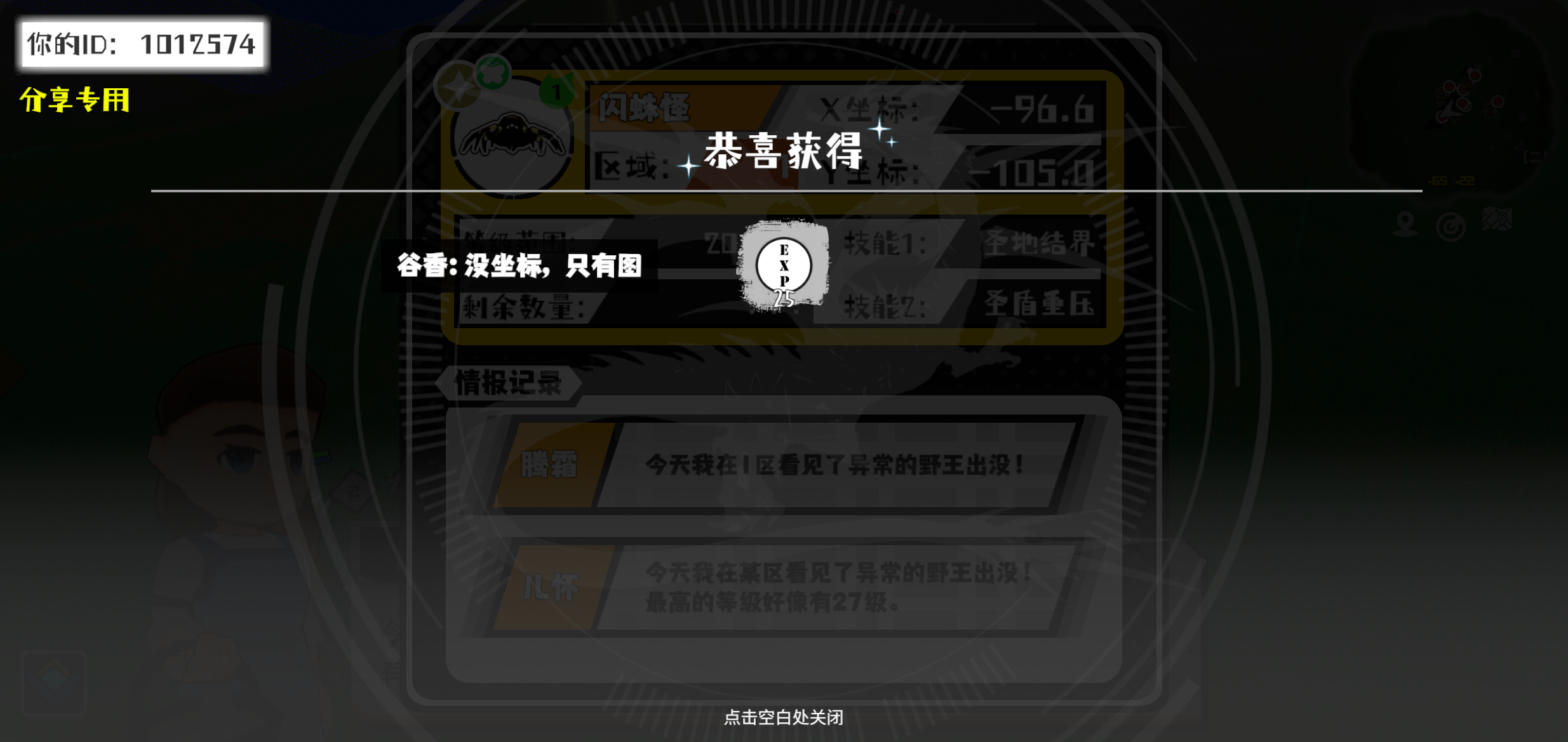 幸运时刻分享! 【野王异常出没】12月22日上午1点 - 闪蛛怪【强度1】 【1区】 【X:-96.6, Y:-105.0】#超数据世界