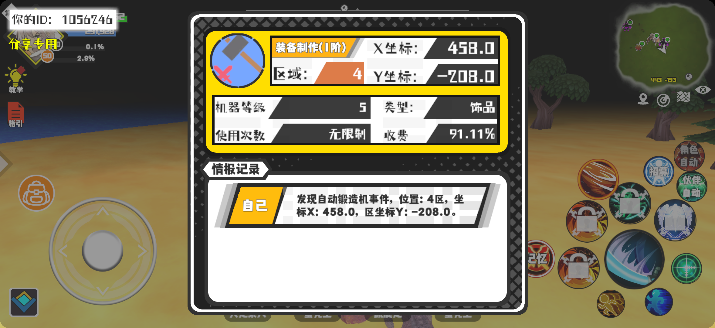 幸运时刻分享! 【自动锻造机】12月30日上午11点 - 装备制作(1阶)【5级机器】 【4区】 【X:458.0, Y:-208.0】#超数据世界
