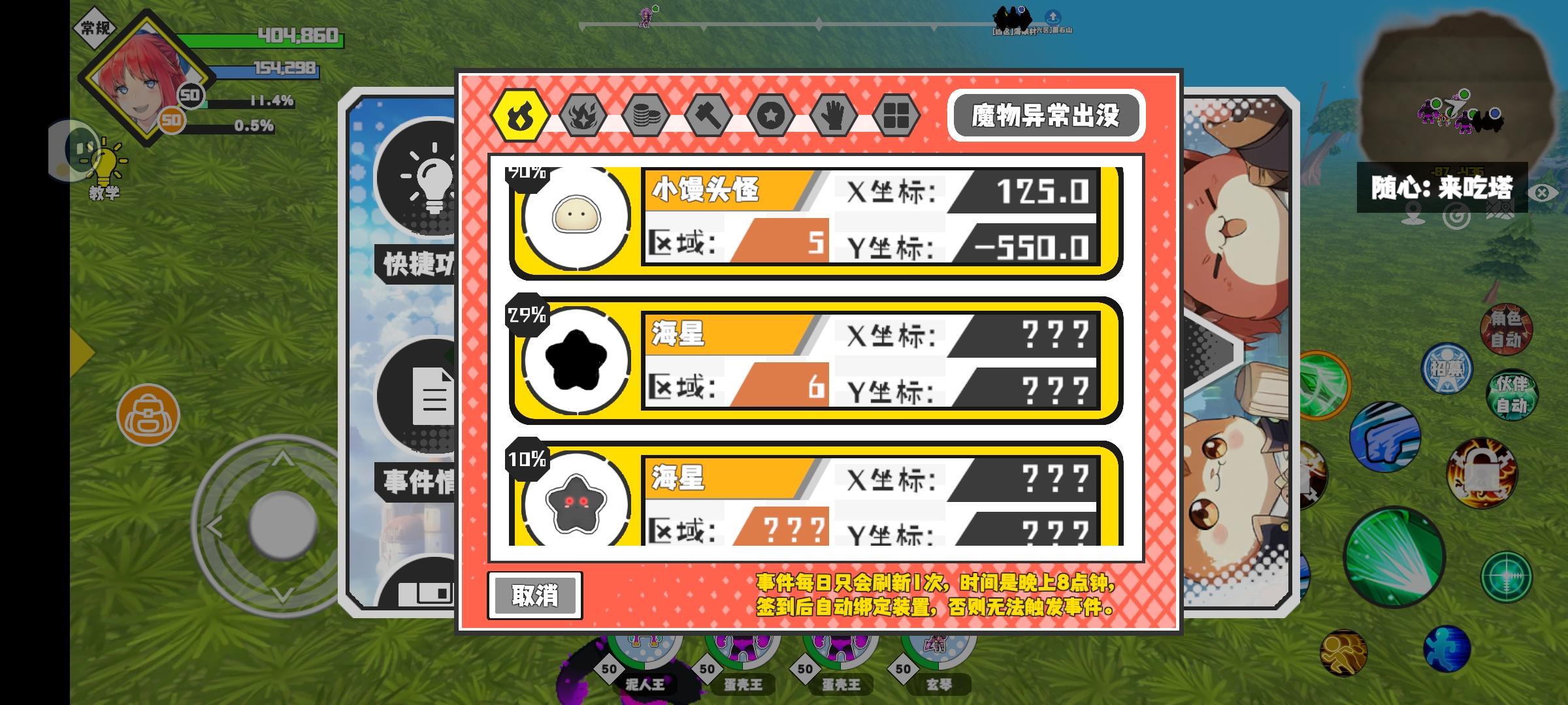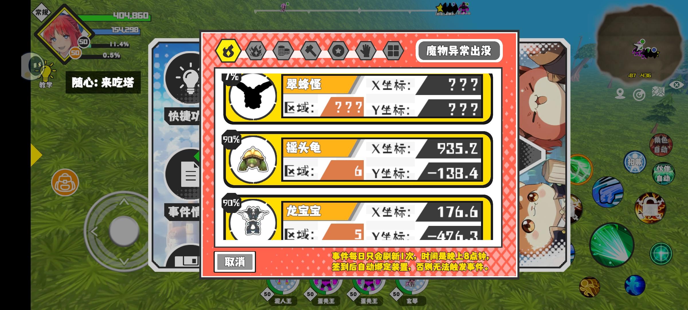 #超数据世界 幸运时刻分享! 【魔物异常出没】12月26日下午2点 - 小馒头怪【强度0】 【5区】 【X:-11.0, Y:-763.0】