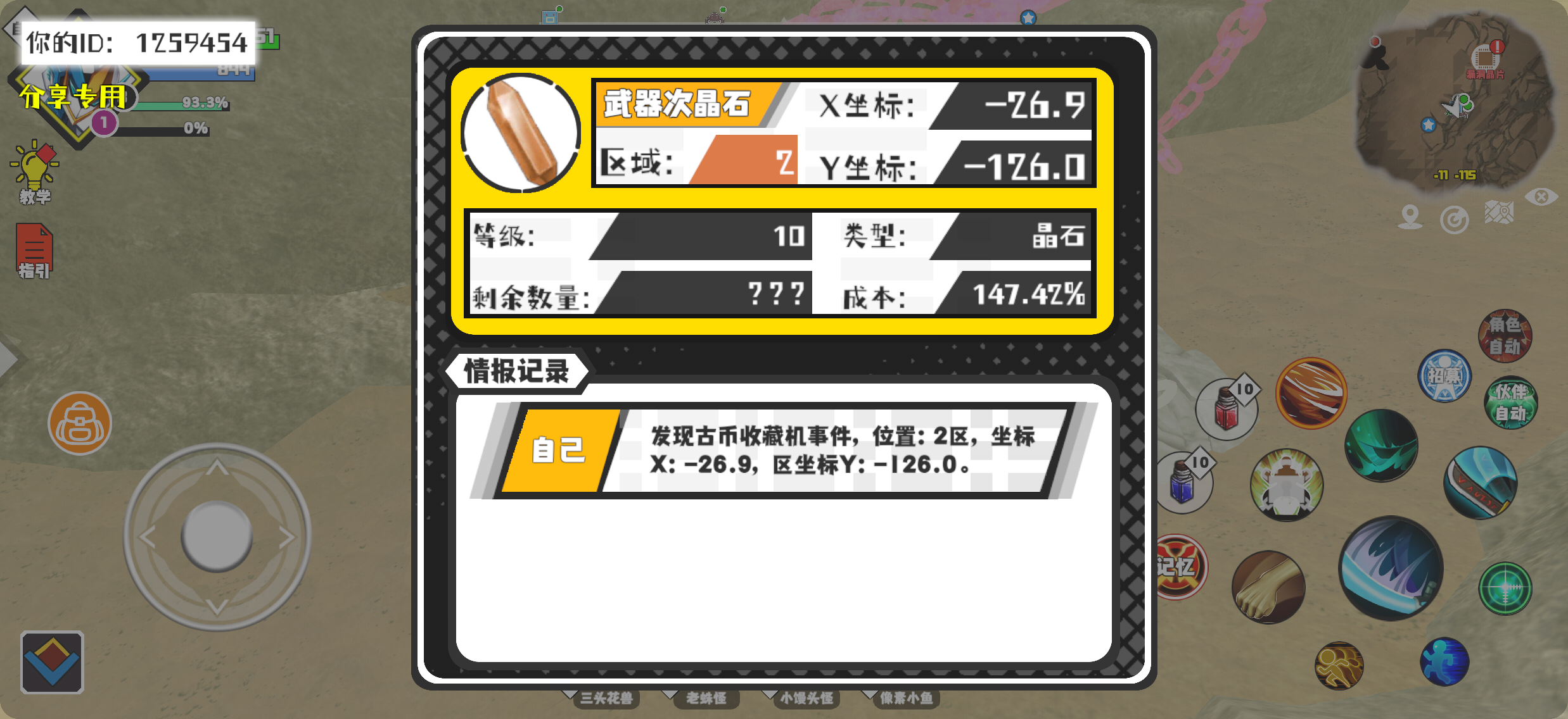 幸运时刻分享! 【古币收藏机】12月28日下午9点 - 武器次晶石 【2区】 【X:-26.9, Y:-126.0】#超数据世界