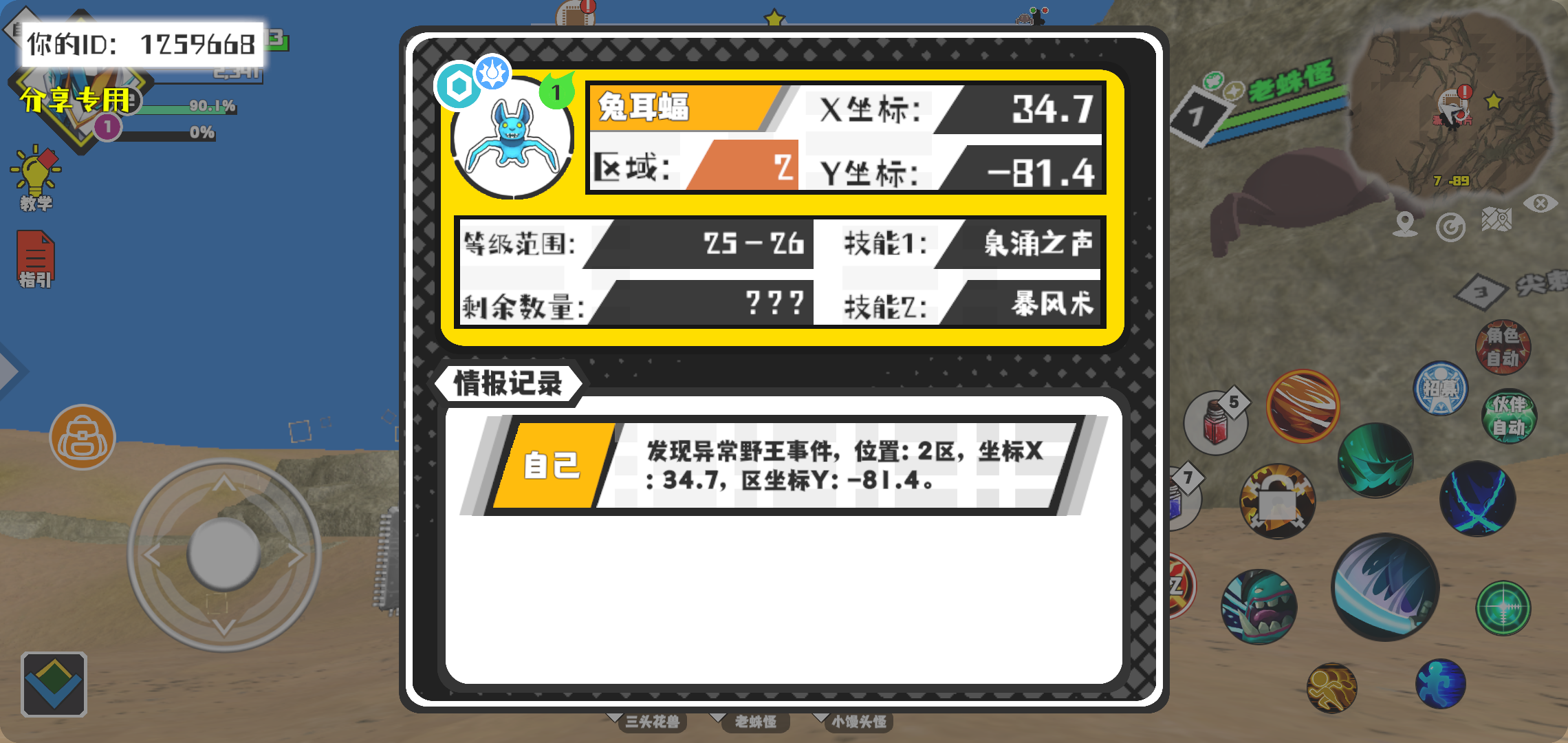 幸运时刻分享! 【野王异常出没】12月30日上午10点 - 兔耳蝠【强度1】 【2区】 【X:34.7, Y:-81.4】#超数据世界