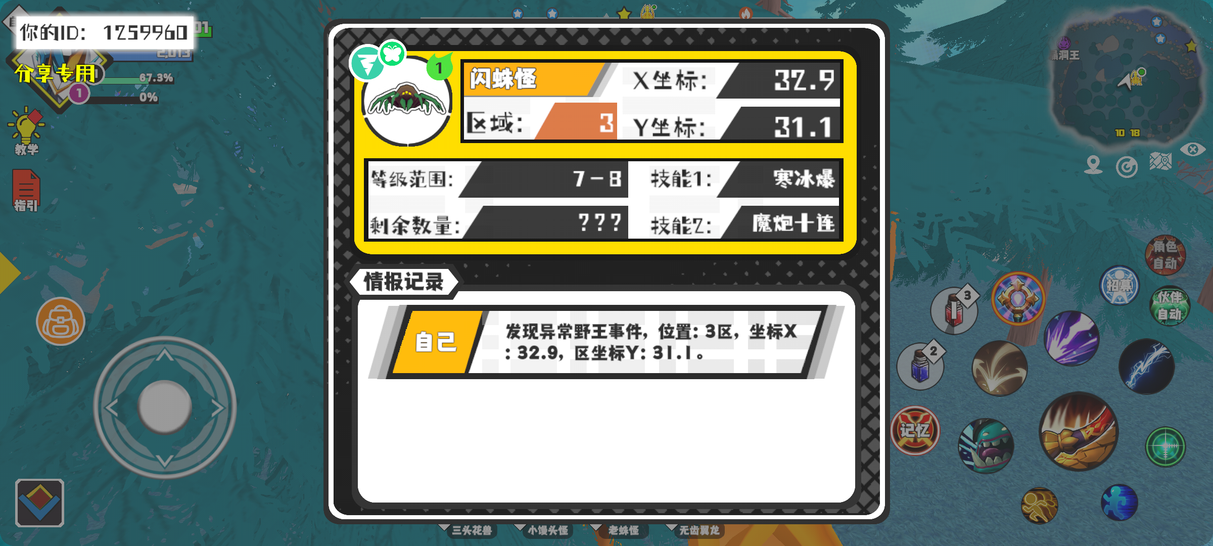 幸运时刻分享! 【野王异常出没】1月1日下午12点 - 闪蛛怪【强度1】 【3区】 【X:32.9, Y:31.1】#超数据世界