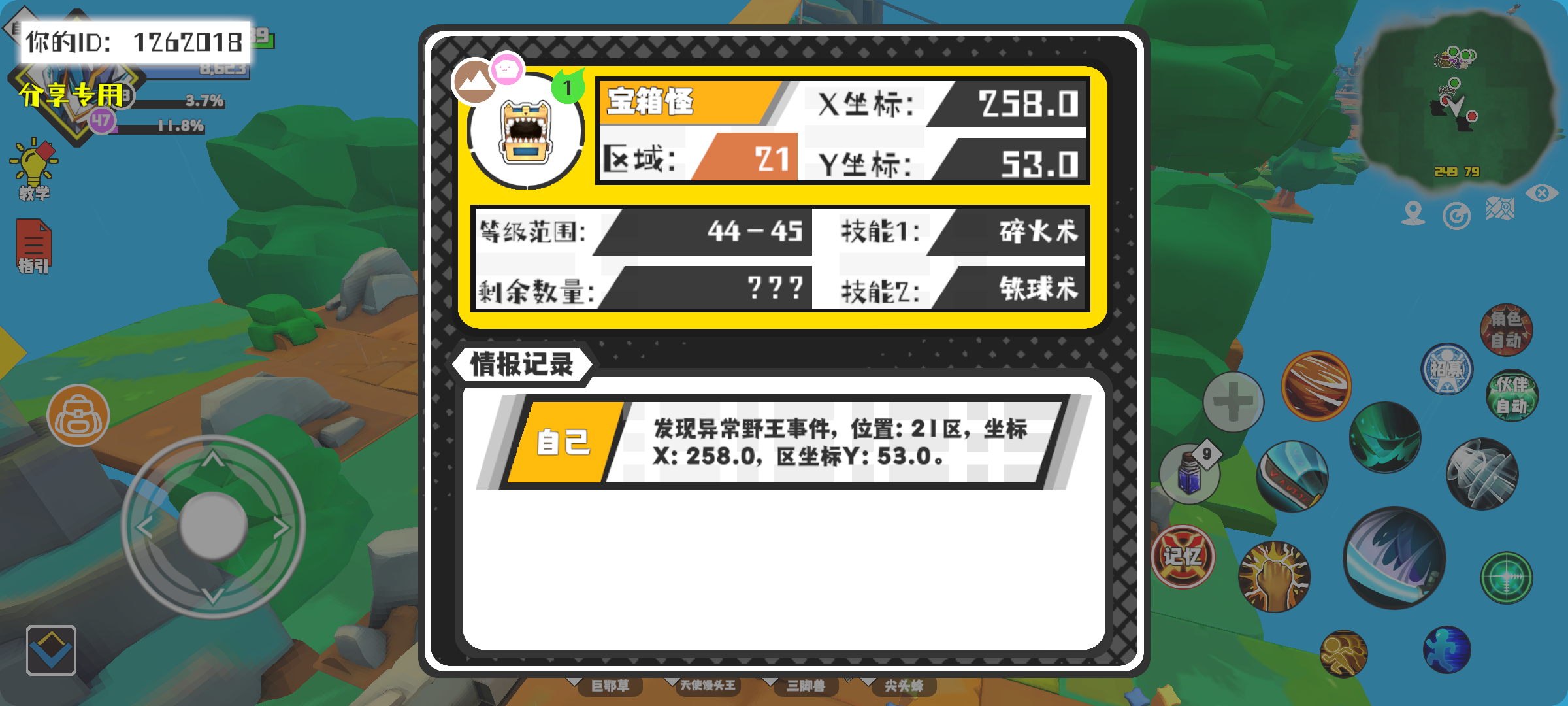 幸运时刻分享! 【野王异常出没】1月13日上午9点 - 宝箱怪【强度1】 【21区】 【X:258.0, Y:53.0】#超数据世界