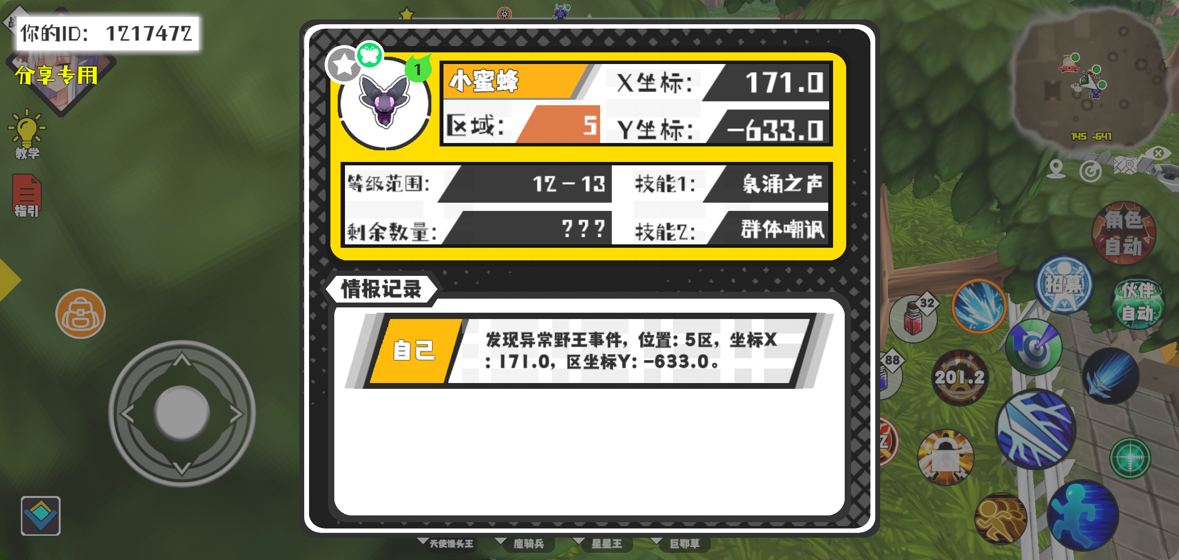 幸运时刻分享! 【野王异常出没】12月19日下午2点 - 小蜜蜂【强度1】 【5区】 【X:171.0, Y:-633.0】#超数据世界