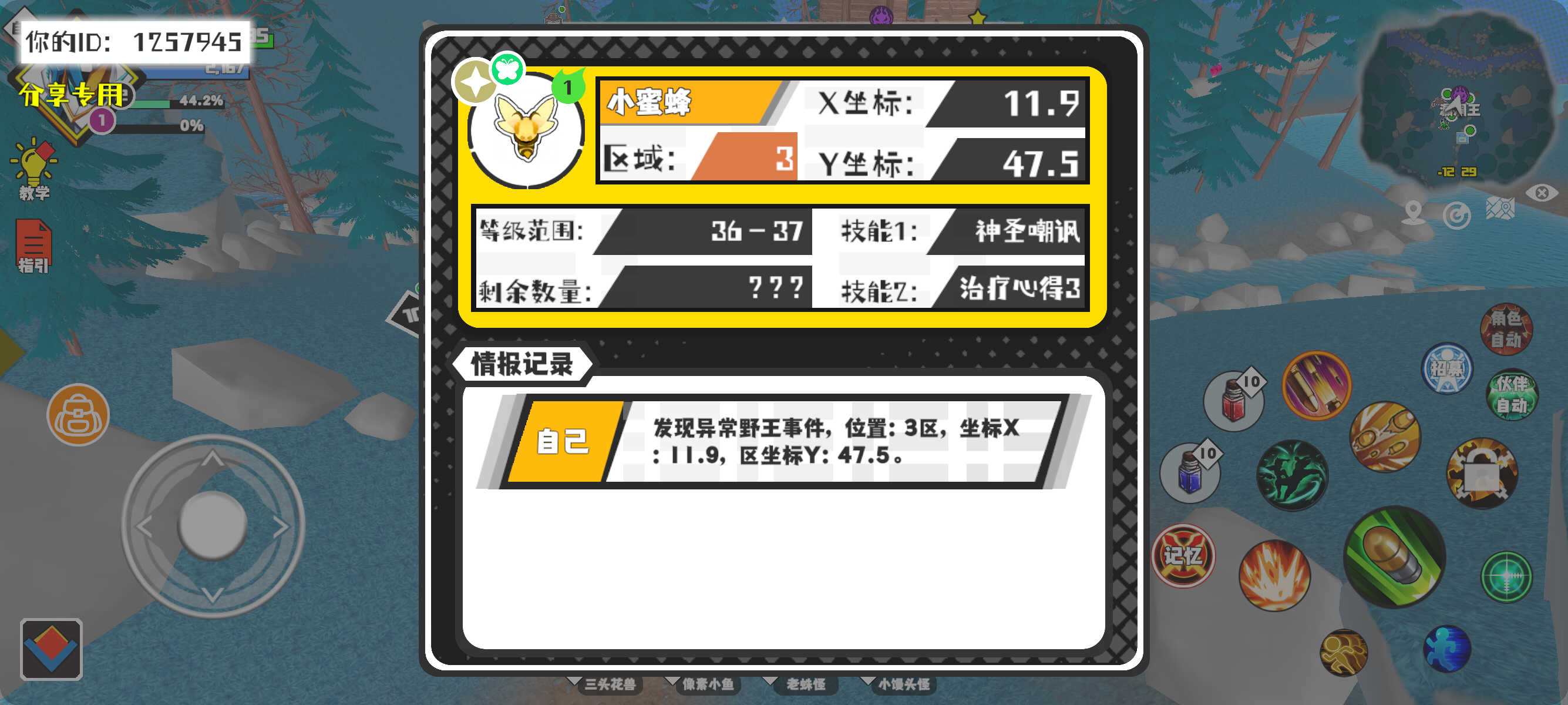 幸运时刻分享! 【野王异常出没】12月19日下午1点 - 小蜜蜂【强度1】 【3区】 【X:11.9, Y:47.5】#超数据世界