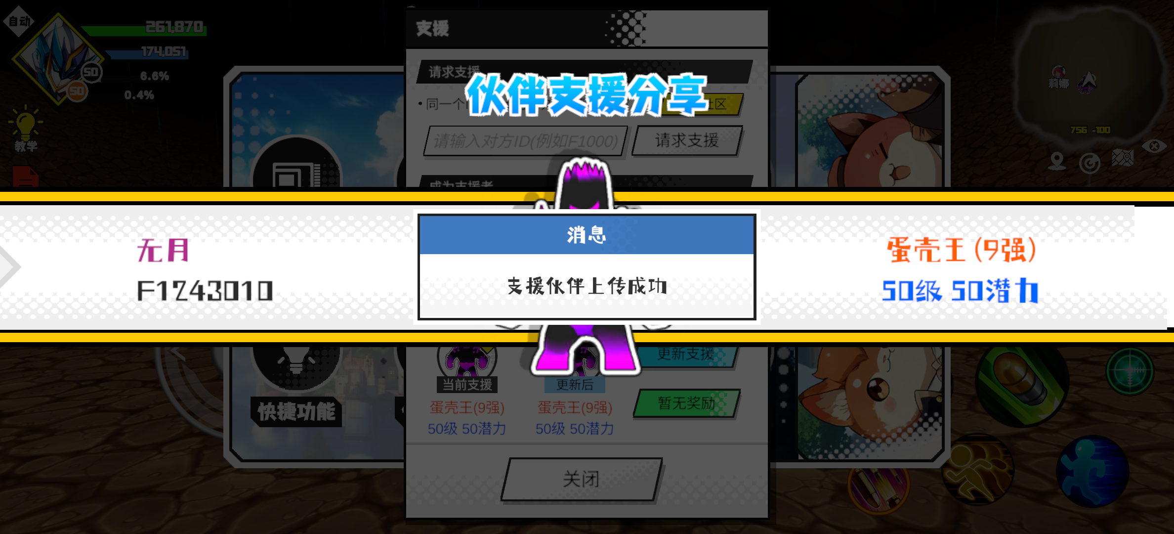 支援者:无月(F1243010)如果遇到困难,可以召唤我的宠物帮忙,召唤方法是进入地图后点击左下角的手机功能>支援>输入【F1243010】>就可以召唤我的宠物!我的宠物是蛋壳王(9强)50级 50潜力技能1:黑魔破技能2:黑魔破技能3:黑魔破技能4:黑魔破智慧配点:245初阶职业:鬼咒进阶职业:海神#超数据世界